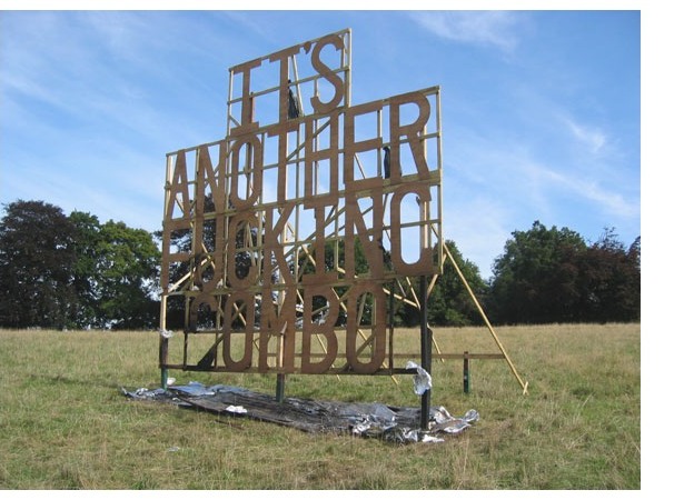 For the exhibition, Ellis will install the site-specific sculpture, Sweet F.A. in the gallery�s front window - an object in which the tension between the aggressive meaning(lessness) of the text and the structure that supports it becomes the content of the work. In the main gallery, the artist will present two different series of deconstructivist paintings. Both bodies of work serve as a journalistic look into the artist�s mind and his take on the art world, and its institutions as a whole. These works, with such titles as Nothing, Fuck All, Nada and I Fucked up my Last Painting are paintings presented in their barest sense, stripped down raw, reduced to a confrontation between an incipient nihilism and human will.