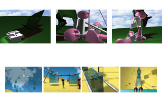 IMAGE DESCRIPTION : 1. Instant Picnic-moss and wood, 2006. 2. - SeeWorld-animation installation, 2006.3. Villa Savoye - animation, 2007. 4. Precision Diving Wheel - animation, 2005. |