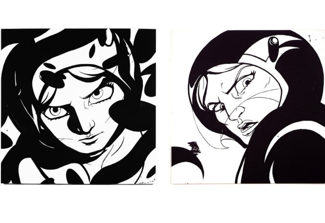 The exhibition will present large scale drawings, done in the 700-year-old tradition of monochrome ink painting known as sumi-e. Applied to fragile, absorbent rice paper, the key to sumi-e painting lies in its brushstrokes made with no room for error. It relies upon the rapid application of gestures that have been repeated so often as to become second nature. Also integral to sumi-e is the idea of presenting the essence of something. This capturing of essence combines with the speed of gesture, resulting in a secondary effect of an approximation of instantaneous travel and warp-speed velocity while remaining Zen-like, in the present. In her essay on Yoshitaka Amano, Rachel Kushner eloquently describes this approximation as „a studied transmutation from extroversion to introversion, a nexus where differing concepts of time, vectors of past and future, come together”. |