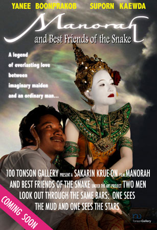 Exhibition: �Manorah and Best Friend of the Snake� Artist: Sakarin Krue-on Exhibition Date: September 9 � October 24, 2010 Sakarin Krue-on returns to 100 Tonson Gallery with the latest solo exhibition �Manorah and Best Friend of the Snake� after he displayed �Cloud Nine� exhibition in 2004. �Manorah and Best Friend of the Snake� is a part of the project �Two men look out through the same bars: One sees the mud and one sees the stars�. This project is represented by several Medias and its goals to express opinions about the social-participation in our weakness country, hold wishes and expectations which are never rise. Sakarin Krue-on is one of the top Thai artists who always participate in the core group shows or events in local and international. Recently, he has been exhibiting his site-specific installation, Temple which was once part of Documenta12, in �Murals� exhibition at Joan Miro Foundation, Barcelona, Spain. This mixed-media exhibition will show video art, title�s movie is �Manorah and Best Friend of the Snake�, consist of paintings, photographs, and objects from the video. This exhibition will be on view from September 9th - October 24th , 2010 every Thursday � Sunday at 11 am-7pm. For more information, please feel free to contact 100 Tonson Gallery at [email protected] or 026841527 Public and Media Enquires: Tel. +66 (0)2 684 1527 : +66 (0) 81-910-9440 Fax +66 (0)2 254-7227 |