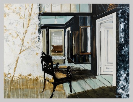 KIRSTEN EVERBERG 1301PE is pleased to announce its fifth solo exhibition with Los Angeles based artist Kirsten Everberg. In her latest body of work, Everberg continues her exploration of the subjective nature of perception. Everberg's paintings of empty interiors and unpeopled landscapes enter into a dialogue with one another, as motifs repeat and transform like recollected memories. She views the works in this exhibition as part of a circular, non-linear narrative that can be entered at any point. In this respect, her paintings reference a fluid cinematic space. More than simply illustrating specific scenes or frames, however, these paintings uncover the persuasive power that images have to construct reality. "Ultimately, the works point to how images are framed, archived, and recalled by the viewer. The hazy edges and blurry lines of Everberg's paintings and works on paper seem clearly focused on the mediation of images within the broader landscape of visual culture." – Gloria H. Sutton, "Surface Effects: Mediating Image Culture in the Paintings of Kirsten Everberg" It is Everberg's seductive surfaces that first capture our gaze. Using a unique combination of oil and enamel paint, her works hover between representation and pure paint. There is always a tension here between the convincing depiction of space, and the abstract skeins of color that dance across the canvas. What appears to be an historic ballroom or dense jungle from far away, is reconfigured into glossy pools of paint close-up. Everberg's mastery of her medium is demonstrated by how deftly she walks this line. Narrative and image; truth and fiction; surface and what lies beneath – are all woven together in Everberg's captivating works. Kirsten Everberg lives and works in Los Angeles. She has had recent solo exhibitions at the Pomona College Museum of Art, CA and the Scottsdale Museum of Contemporary Art, AZ. She has been included in exhibitions at several international institutions including FRAC Champagne-Ardenne, Reims, France; Le Consortium, Dijon, France; Vancouver Art Gallery, Vancouver BC, Canada; Museum of Contemporary Art, Los Angeles, CA; Hammer Museum, Los Angeles, CA; and Musée des beaux-arts, Nancy, France. For more information please contact Matt Stromberg or Brian Butler 323.938.5822 |