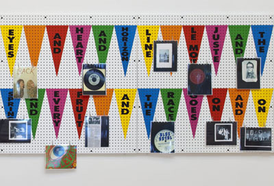 ALLEN RUPPERSBERG No Time Left To Start Again /2 Air de Paris a le plaisir d�annoncer la seconde exposition personnelle d�Allen Ruppersberg dans ses murs : trois nouveaux projets qui portent � nouveau sur les pratiques de la collection et la fa�on dont nous reconstruisons et vivons par des histoires toute exp�rience. Dans l'installation principale, No Time Left to Start Again / The B and D of R'n'R, l'artiste d�core des panneaux s�rigraphi�s de couleur vives (cibles, fanions et po�sie visuelle) avec des impressions couleur d��tiquettes de disques, de n�crologies de musiciens de rock n� roll et de photographies trouv�es, portraits de famille, d'adolescents styl�s ou rebelles, toute une population contemporaine des ann�es 40, 50 et 60, d�cennies qui voient cette musique popularis�e gr�ce au microsillon... Plus d'un millier de documents collectionn�s qui ne sont pas pr�sent�s sur les panneaux sont stock�s dans des cartons, compilant toutes les autres histoires possibles. Cette installation est la deuxi�me d�une s�rie de 5, un ensemble qui recouvrera une p�riode qui commence en 1921 avec le premier enregistrement de musique blues, jusqu�au d�but des ann�es 70, quand le rock n � roll devient le rock. L�artiste a produit �galement une compilation sonore sur les influences du rock'n'roll et ses diff�rentes formes, �quivalent sonore du voyage visuel autour de cette musique � laquelle invitent les panneaux. Les volumes 1 et 2 sont disponibles en vinyles � la galerie. Dans Spell for Creating a Familiar, Ruppersberg insiste sur la dimension participative et cr�ative de l'acte de lecture comme moyen de r�animation / revivification. Des extraits de textes d'un livre de magie � un sortil�ge qui donne vie � un objet inanim� - sont associ�es � des images de jouets miniatures. De sorte que l'�uvre pr�sente une histoire partielle qui ne peut �tre finie que par le spectateur d�chiffrant les images anim�es par un pouvoir pr� langagier, tout en lisant � voix haute le texte. L��uvre LA in the 70s pr�sente �galement textes et images dont l'association doit �tre faite par le spectateur. Un article de journal sur un restaurant de la ville de Los Angeles est morcel� et accompagn� de photographies de restaurants que l�artiste a prises en 1970. 11 ans apr�s le premier happening d�Allan Kaprow, 1 an apr�s l�exposition fondatrice �Quand les attitudes deviennent formes � � laquelle Allen Ruppersberg participait, c�est la grande �poque de l�art conceptuel. Nous avons �galement le plaisir de pr�senter trois nouvelles s�rigraphies uniques de l�artiste, qui d�clinent les questions qui reviennent sans cesse dans l��uvre de l�artiste (� Honey, I rearranged the collection� �), la m�moire collective de Los Angeles et des hommages � son panth�on personnel d�artistes disparus (Marcel Broodthaers, Guy de Cointet, Bas Jan Ader, Wolfgang Stoerchle, Jack Goldstein). Des expositions monographiques ont �t� r�cemment consacr�es � Allen Ruppersberg au Santa Monica Museum of Art (2009) ainsi qu'au Camden Arts Center de Londres (2008). Il participe aux prochaines expositions suivantes : The Last Newspaper, New Museum, New York (5 octobre 2010); Conjuring Houdini, The Jewish Museum, New York (31 octobre 2010), ainsi que dans des expositions au Museum Of Contemporary Art, Los Angeles, Pomona College Museum of Art, Claremont, ainsi qu'� l'Orange County Museum of Art, Newport Beach, dans le cadre de l�exposition-fleuve Pacific Standard Time : Art in L.A. 1945-1980, organis�e par Fondation Getty (automne-hiver 2011). ALLEN RUPPERSBERG No Time Left To Start Again /2 Air de Paris is pleased to present an exhibition of new work by Allen Ruppersberg titled No Time Left To Start Again / 2. Ruppersberg presents three new projects that focus upon the practice of collecting and the way in which we reconstruct and enliven narratives. In the large installation, No Time Left To Start Again/ The B and D of R �n� R , the artist adorns colorfully silk-screened pegboards�some revisiting the artist�s poems about music�with laminated color copies of record labels, album covers, found photographs of teenagers in alternative fashions of the 1940s, 50s, and 60s, and obituaries of rock and roll artists. Numbering over one thousand, reclaimed material that doesn�t fit onto the pegboards is stacked into boxes below, a visual reminder of the myriad of alternative narratives waiting at the periphery. The artist has also produced a compilation record of rock �n� roll�s diverse musical influences and manifestations, forming an audio soundtrack to echo the visual journey taken across the pegboards. In Spell for Creating a Familiar, Ruppersberg, as he has throughout his career, chooses to emphasize the participatory act of reading as a means of re-animation. Texts from a magic spell book are interspersed with tightly cropped images of miscellaneous miniature toys, presenting a partial narrative that can only be completed as the viewer attempts to decipher the photographs and read the spell aloud. Similarly, L.A. in the 70s presents text and images to be assembled and interpreted by the viewer. A 1980s Los Angeles Times article on a once-mysterious restaurant, The Original Spanish Kitchen on Beverly Boulevard, is juxtaposed with early 1970s snapshots of small eateries, creating a refreshed narrative for the city�s social and culinary structure. A large silkscreen of the same title layer images of Los Angeles landmarks and street scenes, with visual indicators of the city�s art community. Ruppersberg�s work has recently been the subject of solo exhibitions at the Santa Monica Museum of Art (2009) and the Camden Arts Centre in London (2008). His work will be included in the upcoming group shows: The Last Newspaper, New Museum, New York (5 October 2010); Conjuring Houd