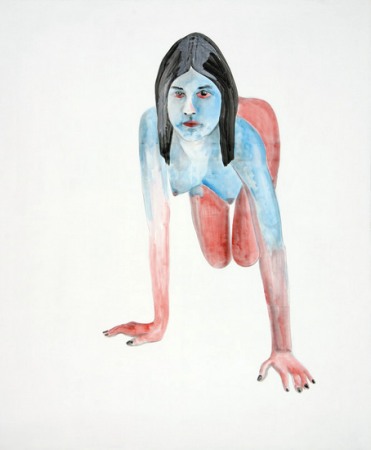 Dan McCarthy October 18 � November 21, 2007 Stripped naked, all attributes removed, even stripped of all rhetoric surrounding the body, stand the men, women, and couples in Dan McCarthy�s recent body of paintings. For his forth solo show at Anton Kern Gallery, the New York painter selected a dozen canvases and a group of acrylic-wash drawings to be exhibited through November 21. McCarthy continues his interest in the human figure and the human condition with an intensity and concentration that take his earlier bathers, surfers and skaters to a new level of idealism. In these near life-size paintings, the artist applies thin, almost watercolor-like layers of paint onto a carefully built-up flat, monochrome background, reducing the pallet to white, black and the primary colors red and blue. Sometimes the women, men, and couples seem pressed in space with their backs to the wall, or reverberating in the slight space between picture plane and ground. Characterized by concentrated lines, statuary posture and proportion, the figures are hemmed in, center stage, fully lit and alert. The artist cautiously recites a call for a �return to classical principles� (reminiscent of the post-WWI spirit of neo-classicism championed by such artists as Cocteau and Picasso) fully aware that this century-old utopia has passed and needs complete readjustment. McCarthy does see painterly materialism in direct opposition to generating meaning. But the paintings eccentricities and impurities become the major ingredient in this invigorating infusion of sensual autonomy and freedom. �The proposal being: stand up and stand out, the quicksand of the material is at your knees and growing.� Dan McCarthy�s work has been exhibited in numerous gallery shows throughout Europe and the United States including Paris, Dresden, Madrid, Amsterdam, Berlin, Geneva, Cologne, Vienna, and Tokyo. Upcoming exhibition: Richard Hughes (November 28, 2007 � January 12, 2008) |