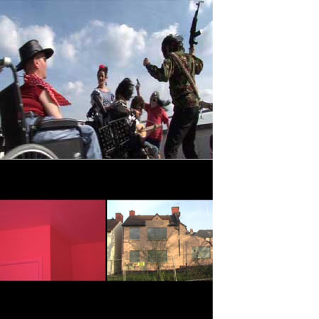 Exhibition Title: The Way Out Artist: 15mm Films Dates: 25-March>14 June 2009 Opening Times: Tuesday � Sunday 11am - 4pm Beaconsfield, 22 Newport Street, London SE11 6AY The Way Out enters the world of the politically incorrect through 15mm Films� latest parody on DVD. This new artwork comprises a series of trailers for a sequence of films that weren�t made, about a revolution that never happened. Disability has never had its revolutionary moment: no Suffrage, Stonewall or Watts Riots. 15mm Films believe that much of the social pressure that goes by the name of �disability politics� is ineffectually sanctioned � absorbed �top down�, by powerful institutions running a tick box regime, rather than through grass-roots insurrection. The Way Out stages a reversal of this historical omission, drawing upon the bungled vanguard narratives of the golden age of 1970s armed revolutionary struggle (Baader Meinhoff, Angry Brigade) to depict a dysfunctional, imploding gang of �disability terrorists�. The feature film is a hole at the centre of the work � an entity become myth � identifiable with the frustrations and invisibility of disability politics per se: the missing film about the missing revolution. 15mm Films challenge normative perceptions of disabled people. A collective of disability artists working in the fields of visual, performance and video art, they are committed to innovation and take an experimental approach to collaboration. The collective has completed three video art projects to date. "The Staircase Miracles�, 2005, was exhibited as a video installation at Ikon Gallery, Birmingham and Serpentine Gallery, London and was preceded by "The Electricians" and "Acute" both in 2003. Current members of the collective are Aaron Williamson, Katherine Araniello, Brian Catling, Charlie Fennell, Laurence Harvey, Simon Raven, Juliet Robson and Philip Ryder. The Way Out is a Beaconsfield commission supported by the National Lottery through Arts Council England, Esmee Fairbairn Foundation and Arts & Humanities Research Council. fallen idyll - the end of a perspective Monica Ross Gallery Two Flat-screen 17 March - 17 May 11am - 5pm fallen idyll � the end of a perspective home movies from 138 St.Lawrence Square, Byker 2003-2008 24� single screen version, 2008 This single screen version of fallen idyll elides sequences from Bykermorning - the view from a deserted utopia: a home movie 2003-2004, with video shot at the same location in 2007-2008 to present a passage of time both seasonal and political. The Bykermorning sequences record early morning views from a window in a council flat in St. Lawrence Square, Byker from spring 2003 to winter 2004, and the transformation of the interior by the shifting light of the surrounding landscape. Visible only to the insider, these idyllic views retain the impulse of the social design and perspectives which produced the housing and run counter both to their decay and to external perceptions of the square as a �no go� area and typical example of the failure of social housing. Five years later, the video witnesses the demolition of this former Tyneside workers� housing, on land once held in common, to make way for its re-invention by property developers as a desirable riverside site. Camera: Monica Ross 2003-2008 and Sneha Solanki 2008 Demolition video shoot assistant: Kenneth Evans Produced with the support of an Isis Arts mini residency 2007 fallen idyll - the end of a perspective was first shown as a two screen video installation by Isis Arts at St.Michaels Mount, Byker 2008. Thanks to Susan Hiller, Jorn Ebner, Michelle Hirschhorn, Joel Fisher, Sneha Solanki, Lisa Panting, Alice Ross, Wolfgang Weileder, Rebecca Shatwell, Sharon Bailey and Isis Arts, Margaret Davis at Your Homes Newcastle, Walter Nichol at Owen Pugh PLC, Jimmy Shaw and the demolition crew. On weekdays the following sister films will be Intermittently shown: School of Paul Klee Gropiusstadt 6� 2006 ,b>Evening in the Workers City Interior,Lipschitz Allee, Gropiusstadt 24� 2006 Gropiusstadt is one of the �workers cities� built on the outer ring of Berlin in the post war period. Utopian and modernist in design, it is of a different scale and quality to social housing estates built in Britain during the same period, but nevertheless shares the same fate of finding itself in a different future to the one it was designed for. School of Paul Klee and Evening in the Workers City were produced following short stays in the artists flat of Pilotprojekt Gropiusstadt, Berlin, in 2005. Pilotprojekt Gropiusstadt is an artist led project curated by Uwe Jonas and Birgit Schumacher with the support of GEHAG GmbH and Kulturnetzwerk Neuk�ln e.V. Berlin. If you would like to request a special viewing, please email or contact the office for an appointment. Spring/Summer 2009 at Beaconsfield The Ragged Canteen is now open Tuesday-Sunday 11-5pm with a range of ethically sourced, fresh vegetarian food, Monmouth coffee, teas and cakes. 22 February � 31 May Gallery 1: Artist in Residence Bob & Roberta Smith As recession bites, Bob & Roberta Smith are making the most of the spacious Beaconsfield premises, turning the former Ragged School into a prolific site of production over one whole year. Beaconsfield is currently inviting the public to view Bob and Roberta Smith's work in progress �This Artist is Deeply Dangerous'. The work takes inspiration from Tennis Correspondent of the Guardian, Steve Bierley's remarkable article on the artist Louise Bourgeois. This 11 meter long work is the most complex painting Bob and Roberta Smith has done to date. People can see Bob and Roberta Smith working on the painting in Gallery 1 until August, when it will travel to the Edinburgh Festival. The painting will then return to Beaconsfield to be shown in Bob�s Factory Outlet exhibition in Autumn 2009. Bob says �The work could be called 'One Song to the Tune of another', let me explain, i