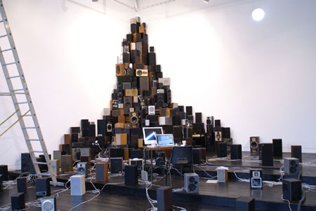 Gallery 1: Artist in Residence Soundtrap IV: John Wynne 16 June � 18 October 2009 Exhibition opens 8th September Opening times: Tues � Sun, 11am - 5pm Beaconsfield, 22 Newport Street, Vauxhall, London SE11 6AY Bouncing off the Walls exploring architectural acoustics and the sculptural potential of sound and redundant technology John Wynne has been commissioned to engage in a research residency that will culminate in an exhibition (opening 8 September) for Beaconsfield, the central London site dedicated to providing a critical space for creative enquiry. Throughout June and July, Wynne will work in Gallery 1 with two assistants, Kimmo Modig and Antoine Bertin, to make a new, site-specific sculptural sound installation using a player-piano, a found vacuum cleaner and more than 300 discarded but working hi-fi speakers. Soundtrap IV: John Wynne Exhibition 9 September � 18 October 2009 (on-site residency was from 16th June) Tuesday � Sunday 11am-5pm Performance event � 24 September at 7pm Preview on 9th September 6-9pm Beaconsfield, 22 Newport Street, London SE11 6AY A 32 channel digital sound controller throws a pianola and a collection of more than 300 recycled hi-fi speakers into dynamic relationship in John Wynne's new sonic sculpture. The Soundtrap research residency at Beaconsfield has enabled Wynne to explore its architectural acoustics with precision. The spatial composition is informed by everyday noises reaching the room from beyond its walls and high-level audio tools have allowed the artist to experiment with the way in which computers can be used to, in effect, draw and sculpt with moving sound. The research leads to a computer-generated installation, offset by the acoustic interventions of a modified player-piano, powered by a domestic vacuum cleaner and re-programmed with a new score encoded on its paper roll. �The Victorian technology of the player piano is a perfect fit for the surroundings of Beaconsfield, which was originally a Ragged School for deprived children. It will be used not in a musical way but visually as a sculptural element and sonically as a kind of tone generator to explore the remarkable acoustics of the space. Although precisely what the piece will look and sound like will only develop gradually over the residency, it will hover on the borders of sound and music, playing on the aura of the absent/redundant performer and on the personality and history of the gathered speakers.� JW John Wynne�s research log: http://www.sensitivebrigade.com/Research_log.html On 24 September at 7pm Rex Lawson will give a rare performance of Conlon Nancarrow studies for player piano, and will join Ed Baxter and John Wynne in a discussion on sound art, player pianos and cultural redundancy. Admission �5. Further information and bookings for 24.9.09 at [email protected] +44 (0) 207 5826465 Soundtrap IV is a Beaconsfield Commission supported by the PRS Foundation and Arts and Humanities Research Council. The artist also wishes to thank his two assistants, Kimmo Modig and Antoine Bertin, Rex Lawson of the Pianola Institute, Richmond Sound Design and Harmonic Functions Inc. Beaconsfield is a Regularly Funded Organisation of Arts Council England. We regret that Gallery 1 is not accessible to wheelchair users. Soundtrap IV: John Wynne is the fourth in Beaconsfield�s annual commission series for new sonic works and cements the gallery�s position as the foremost site for sound art in London. ALSO THIS SUMMER at Beaconsfield The Ragged Canteen is open Tuesday-Sunday 11 am - 5pm serving a range of ethically sourced, fresh vegetarian food, Monmouth coffee, teas and cakes. Gallery 2 9 June - 9 August, FlatScreen Alex Kershaw: 3 films made between 2005 and 2009 A Lake Without Water, 2005/06 9 June - 28 June One of Several Centres, 2007/08 30 June - 19 July Phi Ta Khon Project, 2008/09 21 July - 9 August Alex Kershaw is based in Sydney and works with video and photography to generate unexpected relationships between people and their terrain. Often spending extended periods researching locations and characters, Kershaw�s quiet activism blurs the boundaries between everyday activity and devised performance as ordinary people become involved in the work. Gallery 3 30 June - 18 October Bob and Roberta Smith Factory Outlet: This Artist is Deeply Dangerous, 2009 Artist in Residence from 22 February - 18 October Exhibition 7 November - 21 February 2010 Preview 6 November at 6pm As recession bites, Bob & Roberta Smith are making the most of the spacious Beaconsfield premises, turning the former Ragged School into a prolific site of production for one whole year. On 6 November a launch event from 6pm will open a venue wide exhibition of Bob�s work in Phase: Bob and Roberta Smith, Factory Outlet: This Artist is Deeply Dangerous. This is the first in the Beaconsfield series Phase, which turns the spotlight on mid-career artists with whom the organisation has had a significant past relationship. Gallery 3 Performance 19 September at 2.30pm Monica Ross Anniversary: an act of memory Anniversary: an act of memory is a national participatory arts project marking the 60th anniversary year of the Universal Declaration of Human Rights. Monica Ross is striving to memorise the full document and to reiterate it sixty times in meaningful situations and places throughout 2009. On 19 September, Monica Ross will co-perform the Declaration with a group of other artists at Beaconsfield in Gallery 3, the site of the project�s first manifestation as rightsrepeated, 2005. Performance presented as part of Open House London (19 - 20 September 2009) celebrating the capital�s architecture. For full details visit openhouse.org.uk/London |