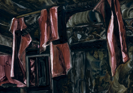 T H R E S H O L D The Blyth Gallery is proud to present an exhibition of paintings, sculpture and drawing by current Royal College of Art students Adam Bainbridge and Anna M. R. Freeman. Notions of home, alienation and belonging are addressed by both artists but are executed through radically different stylistic approaches. THRESHOLD will challenge these concerns by constructing a direct discourse between the two artists work. Freeman investigates themes of longing, infinity, grandeur and dilapidation through painting and installation works combining images of decorative and derelict spaces. Through a fluid and intuitive use of paint, environments are conflated and established. The construction of space occurs both inside the framing of a painting�s surface and in the space of the installed paintings. A different logic is at play in Bainbridge�s work in accordance with an almost opposite way of working. Hyper-realistic drawings give otherworldly places and beings a sense of form and mass, rooting them in a reality in which they do not belong. Like Freeman�s paintings, they seem to transcend reality yet simultaneously remain rooted in it. Both artists engage with ideas relating to �Englishness�. Freeman�s work conjures images of decadent Victorian mansions � images of splendor and excess � that question the comfort and security that this abundance appears to offer. Bainbridge�s England is a very different one � it is a working-middle class England of tidy front lawns, floral fabrics and twee decorative ornaments. Central to both artists work are concerns relating to desire and a subsequent lack. Freeman�s paintings seem to express a desire to be somewhere else. Where this place is, is not made clear � the object of desire remains illusive � yet what is constant throughout is the sense of lack at the core of desire. This is seen similarly in Bainbridge�s work, behind the floating figurines and the melancholic ornaments is the pervading sense that something is missing � that despite whatever is present, whatever is revealing itself and making itself known, there is something further that is not and is destined to forever remain there. Adam Bainbridge was born in Boston, Lincolnshire in 1982 and Anna M. R. Freeman was born in London in 1982. Both artists are due to graduate this summer from the MA Painting course at the Royal College of Art. |