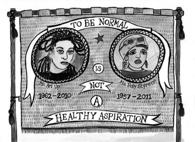 ALL IS NOT LOST 21 Sep - 23 Oct 2011 Zoe Brown, Rebecca Glover, Rachael House, Manu Luksch, Olivia-jane Ransley, Martina Schmücker, Rosalie Schweiker, Jessica Voorsanger, K. Yoland. Curated by Emily Druiff. Cafe Gallery is pleased to announce ALL IS NOT LOST, an exhibition of artworks by emerging and established female artists presenting a philosophy of optimism and resilience. Leaning towards an anarchic aesthetic of protest and DIY culture, ALL IS NOT LOST represents the potential of art to inspire change, with each artist revealing an individual approach to this in the form of confrontation or observation. Rachael House’s protest banner To Be Normal Is Not A Healthy Aspiration, is a direct call to action. This imposing presence features deceased icons Ari Up and Poly Styrene, the banner is an object but also an invitation: to consider, and to participate in, an alternative. Martina Schmücker’s Visual Mechanics three dimensional installation examines the perception we have of older women and their influence in contemporary society. The installation of reconstructed screens presents an irregular performance of a restricted view of a woman reclining on a narrow plinth, manipulated by the screens that surround her. Zoe Brown’s use of celluloid employed for “its sentimental potential” depicts women gorging on houses made of sugar and cake in a moment of indulgence. Her film House Of Cake references a bygone Victorian era where the privacy of the house was the women’s domain. Forty letters are sent to random celebrities in Christmas Card Project, part of the Mail Art Series by Jessica Voorsanger and are displayed in an installation alongside the responses from David Blaine and others in a witty exploration of the concept of celebrity. We Have Secrets showcases K. Yoland’s installation of suspended fantastical superhero-come-warrior masks, which form a hollow three-dimensional pyramid. The pyramid structure of ‘heads’ explore and question the nature of power and interaction in our society. Manu Luksch’s short film explores the role that public space plays in children’s development. Blue-Sky Blueprint depicts a radical re-visioning of public space resulting from an unusual collaboration between architectural modellers and Southwark children who acted as the primary researchers and designers for the project. Olivia-jane Ransley’s drawings find strength in the celebration of small, everyday moments. The Quotidian Entries is an ongoing project of humorous observations and the artist’s continual social anxieties. The illustrations will be emailed to the gallery throughout the show and will be displayed pinned onto the wall as well as in a ‘zine’ from the front desk. The Penis Show curated by Rosalie Schweiker, is an exhibition within the exhibition. It includes work by Joanna Waterhouse, Matthew Sleeth, Colourful Colophone, Gillian Wylde, Hannah Clayden, Arthur Hazlewood and other good artists. Intruding into the gallery from unexpected places is Rebecca Glover’s The Inhabitant a site-specific installation, of alien-like, semi-organic forms that questions notions of security in relation to our environment, interacting directly with the architecture of the gallery and transforming the potential of the space. Exhibition open: Wednesday – Sunday 12 to 6pm. On Friday, 30 September both Dilston Grove and Cafe Gallery will be open until 9pm as part of SLAM Last Fridays. SLAM Last Fridays is a South London Art Map initiative where over 200 galleries in South London open late on the last Friday of each month.** Cafe Gallery Centre of Southwark Park London SE16 2UA T: +44 (0)20 7237 1230 E: cgp.mail @ virgin.net cafegalleryprojects.org |
