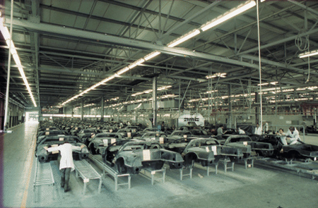 Duncan Campbell 13 November � 20 December 2009 Preview Thursday 12 November, 6.30 � 8.30pm For his first major solo public exhibition in London, Chisenhale Gallery premieres a new film by Glasgow-based artist Duncan Campbell, co-commissioned by Chisenhale Gallery; Film and Video Umbrella; Tramway, Glasgow and The Model, Sligo. Make it new John (2009) tells the story of the DeLorean car, its creator John DeLorean and the workers of the Belfast-based car plant who built it. The film deftly contrasts the DeLorean dream with its spectacular downfall during a critical period in Northern Ireland�s history, and the canonisation of the car � the DMC12 � as a symbol of the American myth of mobility. The son of an immigrant Romanian foundry worker, John DeLorean�s natural talent for engineering took him to the top of Chevrolet, General Motors� most important division. Leaving this behind he persuaded the British Government to back his new venture � building a factory in Dunmurry in Belfast to produce a new sports car. Almost immediately beset by financial difficulties and allegations of embezzlement, DeLorean�s attempts to keep the factory open became increasingly desperate and corrupt, eventually leading to his arrest by the FBI. The factory - which employed 2000 workers - closed in 1982, having produced just over 9000 cars. As with the earlier works such as Bernadette (2008) and Falls Burns Malone Fiddles (2003), in Make it new John Campbell fuses a documentary aesthetic with fictive moments, using existing archive news and documentary footage from the 1980s as well as new 16mm footage which imagines conversations between DeLorean factory workers. Campbell questions the documentary genre and reflects here on broader existential themes and narrative drives. Make it new John lasts approximately 50 minutes and will be screened on the hour during gallery opening times. Duncan Campbell lives and works in Glasgow. In 2008 Campbell was the recipient of the Baloise Art Prize and a Paul Hamlyn Foundation Award for Artists. Recent solo exhibitions include Kunstverein Munich; Ludlow38, New York and The Scottish National Gallery of Modern Art (all 2009). His work has also been featured in Art Now Lightbox, Tate Britain, London (2006) and Manifesta 5, European Biennial of Contemporary Art, San Sebastian (2004). Talks & Events Saturday 28 November 2pm Isobel Harbison, Exhibitions Organiser, Hayward Touring leads a tour of the exhibition. Thursday 3 December, 7pm Richard Kirkland, Professor of Irish literature and culture at King�s College London, will discuss the rise and fall of the DeLorean project in the context of Northern Ireland in the 1980s. Sunday 13 December, 4pm Duncan Campbell discusses his new film and recent work with Mark Godfrey, Curator, Tate Modern. |