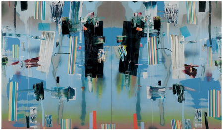 Tomory Dodge Feb 24 - April 2, 2011 Opening reception Feb 24, 6-8pm Tomory Dodge�s latest body of paintings at CRG is marked by a significant extension within his already diverse gestural language. Within a series of larger works, including two diptychs and smaller canvases, Dodge employs graphical systems and procedural frameworks in the form of grounds comprised of optically resonant stripes as well as Rorschach-like bilateral symmetries. In works such as the The Future, an expansive horizontal in two parts, Dodge solidifies space with a rigid ground of hard-edged striped color, introducing an instantiated graphical boundary and a shallow but dynamically layered space. In past works Dodge made use of atmospheric expanses as a kind of suspending ether for his thickly laid strokes of material. Such textural and representational discordance offered a means of conveying vast spatial distinctions as well as material fact. While not clear representations of a changing gradated sky, lacking any point of terrestrial reference, the familiar is implied. Though some works in the exhibition make use of this to varying degrees, Dodge�s overall trajectory appears to veer towards less distinctly referenced spaces. With a nod to optically resonant painting, Dodge allows the vibrant linear patterns to define a kind of baseline from which all things are measured. These spaces attempt to become self contained; making reference to conceptions of space rather than specific spaces. In these works, Dodge allows for aberration in the graphic pattern where the masked stripes appear to have been smeared, patched, or repaired in places; creating further differentiated density among his networks of striated and raked gestures. In other works like the diptych Texoma, Dodge introduces a procedural construct as means of execution in which a mark is made and then remade again on the opposite canvas as though mirrored bilaterally; the central union of the two part canvas forming the intended fold of a Rorschach-like inkblot. Unlike the precision or immediacy of a true inkblot, Dodge maneuvers the constrained space wavering between attempts at exact replication of an initial mark while at other times intentionally copying through loose emulation or location only. The construct, a kind of restricted version of Jaspen Johns or Robert Rauschenberg-style gestural dialog, creates a kind of self-contained binary play. Here the viewer�s inspection attempts to resolve the image�s structure; shifting from side to side, gauging similarity, or establishing the precedence of one mark over the other. Dodge describes the works half jokingly as a �train wreck,� explaining a process of using subsequent, seemingly unrelated layers to negate or �derail� the previous layer, creating instances that are ever more phenomenologically contained by their own means. Tomory Dodge was born in 1974 in Denver, Colorado. He now lives and works in Los Angeles. UPCOMING CRG EVENTS: CRG Gallery at the Armory Show: Pier 94 Steven Bindernagel March 3-6, 2011 Twelfth Avenue at 55th Street Pier 94, Booth 1212 CRG Gallery at the ADAA Art Show Wishing and Praying: An exploration of the impact of contemplative prayer, spiritual longing, and religious iconography in contemporary art. March 2-6, 2011 Park Avenue Armory at 67th Street Booth B8 Exhibition to follow at CRG Gallery in April CRG GALLERY 548 W 22nd St, New York, NY 10011 T 212-229-2766 F 212-229-2788 www.crggallery.com Transportation: C and E trains to 8th Ave at 23rd St / M23 Bus to 10th Ave and 23rd St |