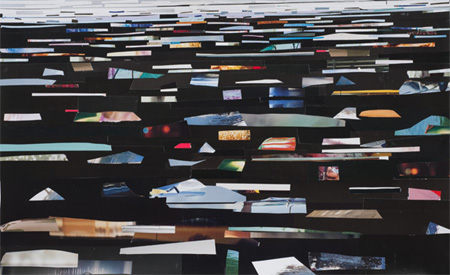 TOMORY DODGE | Works On Paper NOV 7 - DEC 19, 2009 opening reception: Saturday, November 7th, 6-8pm For the first time Tomory Dodge exhibits a sweeping body of new works on paper; comprised of roughly 40 watercolors and collages. The works will be shown concurrently at both CRG Gallery in New York and at ACME in Los Angeles. The Exhibition is accompanied by a catalogue co-published by both galleries and includes an essay by Pierre Sterckx. While watercolors and small studies in oil have long been integral to Dodge's process and have often served as a formative layer in the development of larger works, this recent undertaking constitutes gestures solely understood and determined within the medium of collage and watercolor. With passages that appear to revisit or reconsider his work anew from a clearly defined vantage, the images are characterized by the structural limitations and advantages within the medium of paper. In works like Sea of Objects (2009) Dodge makes reference to works inspired by trash strewn swimming pools and receding aquatic vistas, though instead of his signature interplay of gradient surface and thickly applied tranches of prismatic and textured paint we see washing blends of watercolor overlaid with torn and cut out fragments of photographic media. Wherein his works on canvas Dodge has worked within an exorbitant gestural vocabulary of paint in the service of representation; the medium precariously bound into recognizable forms often mimicking optical phenomena like lens flares and starbursts, here the dialogue could be said to have come full circle from its constituent sources. Pieces of appropriated matter, upon closer inspection: scraps of architecture, images from the Hubble telescope, sprawling city lights, and wildlife among others, now serve as patterned and textured approximations of his painted gestures. It is as though the sources of his inspiration; the outerlands of Los Angeles, arctic ice drifts, collapsed and exploded structures, and general debris have now been reintegrated or recycled via a process of redocumention and redestruction. It is through this convolution that Dodge has managed to reinvent his formal / representational play on a wholly unique scale. With moments that might be reminiscent of Kurt Schwitters' appropriated forms Dodge uses the layering of cut paper and watercolor as a means of reassembly and condensed structural exploration within his work. In addition to this exhibition a forthcoming print edition derived from the work will soon be available through CRG Editions. The new catalog, Tomory Dodge: Works On Paper is available through CRG and Amazon.com. CRG GALLERY 535 W 22nd St, New York, NY 10011 | T 212-229-2766 F 212-229-2788 | www.crggallery.com |