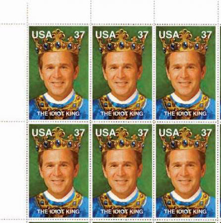 Idiot King [detail], 2001 - Sheet of perforated, laser printed stamps, 8 �� x 11� |