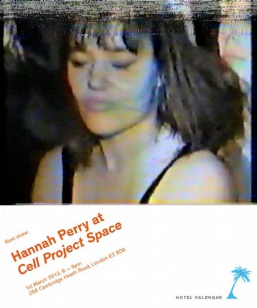 CYcLE CLUB Hotel Palenque & Hannah Perry Thursday 1st March 2012, 6-9pm Hotel Palenque has been invited to host the third CYcLE CLUB event at Cell Project Space. Curated by Elise Lammer, Hotel Palenque is a continuous programme of newly commissioned contemporary art projects focusing on producing and presenting new works by emerging artists on a single A0 non-reproducible print. Hannah Perry will present Hotel Palenque's 5th commission. During this one-night event, the resulting A0 print will be paired with a performance displaying VHS footage collected by the artist. Exploring the notion of decay, the artist will nostalgically stage the death of analog media by recording the progressive disappearance of the moving image by simultaneously exposing the visual flaws and scratches of the artist's continuous mixing, and processing of footage. Displayed on an obsolete RGB projector, deteriorated images of pop culture icons question our ambiguous relation to an irretrievable youth. Hannah Perry graduated from Goldsmiths College in 2010. She will open her debut solo exhibition as part of the ‘Invites’ series, curated by Ellen Mara De Wachter at the Zabludowicz Collection on 8th March-1st April 2012. Exhibitions and projects in 2011 include ‘Les Televisions’ at French Riviera 1988, London, 'Lucky PDF TV for Frieze Projects’ at Frieze Art Fair, London, ‘Late At Tate’ curated by Paul Purgas, Tate Britain, London, and performed ‘Bodyhacker’ a continuous video installation incorporating live film with a collaborative DJ set, at Focal Point Gallery, Southend-on-Sea. Perry lives and works in London and is studying on the Fine Art programme at Royal Academy Schools, London |