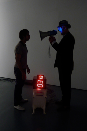 Cabaret Futura Tom Humphreys � Jonty Lees � Haroon Mirza feat. Richard �Kid� Strange Private View Friday 5th September 2008 6th Sept.-5th Oct Open Fri.-Sun. 12 - 6pm Cabaret Futura suggests a future so clearly set in the past. It directly takes its name from the former Soho club of the 1980�s founded by Richard �Kid� Strange. His concept for the club was influenced by New York�s Kitchen, PS1 and The Franklin Furnace, which evolved into a hot house of collaborative and fringe music inside a mutated European Cabaret environment. The club�s name suggests its oxymoronic undertones combining the electronic sounds of the then new post punk music scene with live performance and a more underground mood of the vintage Berlin model immortalised, if not invented by, Auden and Isherwood. This exhibition will reflect much of the anticipation and the sentiment of �the happening�; an exhibition about the performance and its aftermath. The title being the underlying subtext for the show. All the works here either emerge via their sinuous percussion or an assemblage which suggests a playful intervention, experimental, inquisitive and open ended. Haroon Mirza works with a concoction of sculpture, video and audio installation. He merges elements that are typically regarded as incompatible and/or dangerous when combined: water and electricity, vintage furniture and fairy lights, Pachabel�s Canon and glitchy hypnotic beats, which chillingly conjure the urban wilderness of the distortion and weird sound effects of audio equipment in housing estates or the drenched echo of piped music in shopping malls. His compositions weave between electronic and analogue sound. Part of the exhibition will include a unique collaboration where Richard �Kid� Strange will perform live as part of Haroon�s Mirza�s sculptural intervention influenced by the late 70s and early 90s occult films of Kenneth Anger and Ken Russell. Haroon Mirza graduated from the Chelsea MA programme last year and after following a period of research, which he undertook in Pakistan has moved to Sheffield where he currently lives and works. His practice has been documented in RADAR in Art Kunst Magasin by Felix Kr�mer, curator of Hamburger Kunsthalle, Germany and he is to be included in �More Pricks than Kicks�, Generator Projects, Dundee and the �2008 New Contemporaries� to open as part of the Liverpool Biennale. Previous shows in 2007 include �Noise Reduction: off�, Dreizehnzwei, Vienna and �Working Things Out�, Spike Island, Bristol. Richard Strange, actor, writer, and musician, was the lead singer of the now disbanded �Doctors of Madness�, one of the few British bands who could credibly claim to be called 'proto-punk'. The band�s wall of white noise and feedback were the harmonic equivalent of bare-knuckle fighting. Since the band�s break up Strange has worked with a range of acclaimed film directors and artists from Tim Burton to Marriane Faithfull. His critically acclaimed memoir �Strange- Punks and Drunks and Flicks and Kicks� was published by Andre Deutsch in 2004. Working in sculpture, video and installation, Jonty Lees� series of sonic interventions have the lightness of touch, experimenting with the percussive noise of everyday objects and the familiar material of life. This effortless economy and complex nature of representation is at the heart of Lees work. Stemming from impatience and boredom sentiments associated with 90s rave culture there is always a playful and imaginative access route between each work and its audience. Lees is known for interfering with a space to create a concoction of unrest revisiting the gadgets and games of childhood memories or those poetic moments of daydreams. Jonty Lees lives and works in Cornwall and has recently undertaken an Artist Residency programme at Tate St Ives, culminating in a solo show with documented catalogue essays by Martin Clark and Michael Archer. In 2006 he had a solo exhibition at Moot, Nottingham and has recently been included in the Nought to Sixty programme at the ICA, London in a unique multi-layered event involving installation, performance and documentation organised by writer & curator Andrew Hunt. Tom Humphreys works with classic ideas of formal language, although his attitudes towards production demonstrate a refusal of the ideology of adopting a fixed artistic position. He utilizes the archetypal framework of modernism i.e. the frame, pedestal, and canvas where the recognizable fabric of display becomes the work itself. As artist, curator he incorporates the cultural and social form of the exhibition as a means of gerenerating chains of reference. His work, often �unfinished� in appearance seeks to explore the artist interest in the ideas to do with taste, and that whether or not something exists or is true. Tom Humphreys was the founder of Flaca, London, where he developed a program of international exhibitions and events. He has recently shown in group exhibitions at Carl Freedman and The Approach E2 Gallery and has exhibited internationally at Mezzanin Galerie, Vienna and Croy Nielsen Gallerie, Berlin. Humphreys lives and works in London. |