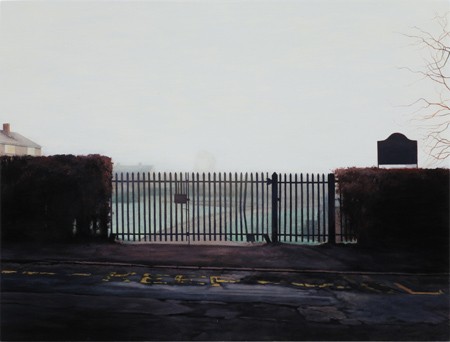 Nothing Like Something Happens Anywhere STAN DENNISTON, GEORGE SHAW, MAAI KE SCHOOREL, UGO RONDINONE, BEN RIVERS, FRANCIS ALŸS AND ANDY HOLDEN Fri 6 July — Sun 2 September Taking its title from a line in Philip Larkin’s ‘I Remember I Remember’ this exhibition explores the meaningfulness of ‘events’ in our lives, as opposed to the unadorned fact of ‘living’. The work explores the nearly imperceptible evolutions in everyday life; the slow history that lies beneath the surface of culture and contrasts with the highpaced changes dominating the surface. Delving beneath the rapid succession of events on a human scale, to find the slower currents typical of the history of human groups —relating to their environment and the structures that shape societies. The social history described by historian Fernand Braudel as an "anonymous history, working in the depths and most often in silence". Francis Alÿs’ work stems from his interest in the factors that shape urban existence and the innovative schemes that ordinary individuals devise to subvert them. Employing a range of media his works involve intense observation and recording of the social, cultural and economic conditions of particular places. In his 1997 film ‘Paradox of Praxis I (Sometimes Doing Something Leads to Nothing)’, he uses poetic and allegorical methods to address political and social realities. The five-minute film sees the artist push a large block of ice — identical to the thousands that are delivered every morning to street businesses — through the streets of Mexico City. Initially he battles with the traction of the huge weight, struggling on in the intense heat of the day, until all that remains is a small wet stain on the pavement — a poetic rupture that alludes to the seemingly unproductive hardship involved in the daily survival tactics of the city’s residents. ‘Los Soñadores (The Dreamers)’, 2009, Stan Denniston’s nine-channel video installation reflects the artists continued interest in the boundaries between still and moving image, adopting an uncompromising realism in its almost motionless portraits of sleeping Havana street dogs.At one point, however, the dogs suddenly wake up en masse, rise to their feet and exit the screens. Denniston presents this moment in slow motion, instilling intensity and meaning to their movement; are they being prodded to move on, displaced perhaps as wandering refugees? Playing with the tensions between domestication and the instinct to survive, private ownership and public responsibility, the dogs contribute symbolically to the notion that — unlike many popular tourist-board narratives — Cuba’s social and political systems are somewhat weathered and worn. Andy Holden’s work incorporates monumental outdoor structures, plaster, bronze and ceramic sculpture, film, painting, collaborative lectures, recorded music and musical performances. Often showing these diverse media together, his work builds a fragmented yet richly textured collision of ideas, references and forms. ‘The Cookham Erratics’ (2011), a series of six sculptures constructed from steel, foam and mixed knitted yarn, presents a personal archaeology from which a disembodied voice recounts a fragmented narrative that Holden has composed — meandering through subjects as diverse as geology, art history, theology and metaphysical poetry. The films of Ben Rivers are rich, cinematic portraits that challenge notions of scale, perspective and stability. Shot on a wind-up Bolex camera, ‘The Coming Race’ (2006) features hundreds of people frantically scrambling across rocky mountain terrain; the footage is shrouded in an indistinct haze that drifts over the image to cloud our vision; the groups that populate the film exist outside of conventional time. The destination and purpose of the crowds’ ascension remains unclear throughout the film’s five-minute cycle — it is a vague and enigmatic pilgrimage that sits somewhere between the real and imagined as we witness the eternal struggle of humankind to reach the summit. Ugo Rondinone’s ‘still.life. (cardboard leaning on the wall)’, 2009, accentuates the sculptural properties of the everyday. The textured surface of the bronze cast cardboard takes on a painterly dimension and in this respect reflects the long tradition of still life — of apparent naturalism underpinned by compositional artifice, and of time suspended. The bronzes’ lead core reinforces the notion of heaviness, of time slowed down, by pulling it towards the ground to emphasise ideas of impact, isolation and passivity; paradoxically, in so doing, it provides a melancholy reflection on its subjects’ inevitable transience. Maaike Schoorel’s minimal paintings inhabit a position on the edge of legibility. Her brush strokes suggest outlines, marks, colour and shadow and invite a particular way of looking that allows the images to unravel over time. Using her own photographs as reference material, Schoorel paints portraits of friends and family, as well as depicting the familiar scenes and activities that reference collective memory. She also alludes to the history of her chosen medium through the subject matter of paintings. After selecting and cropping her photos Schoorel involves the picture in a series of reductions until she wears away the original image to reveal something new. The paintings of George Shaw comprise a sustained enquiry into the nature of time, place and memory and record the mundane and often overlooked. Based on photographs taken of and around his childhood home on the Tile Hill Estate, Coventry, Shaw’s landscapes are at once familiar and unsettling. Working from photographs, Shaw renders his work almost exclusively in the Humbrol enamel paint used by model-makers. His paintings have a unique, instantly recognisable quality; a reflective, seductive surface that lifts them from the realm of the purely representational. There is a haunting 