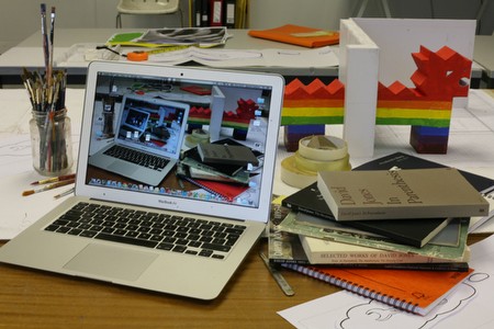 Joanne Tatham and Tom O'Sullivan: A tool for the making of signs Friday 7 December - Sunday 24 February Dydd Gwener 7 Rhagfyr - Dydd Sul 24 Chwefror Joanne Tatham & Tom O’Sullivan work in collaboration to produce provocative and interrogative works that are often concerned with the mythic potential of art. Utilising sculpture, painting, architecture, performance, literature, institutional critique and curation, the artists re-stage and re-present a vocabulary of images, phrases and forms that are part of a common history to create carefully crafted paths, displacements and diversions. These act as a tool for exploring the world of art - with its own collective mythology of forms, objects and histories. A tool for the making of signs features a number of elements intended to challenge and confound easy interpretation, not least of which is the cartoon motif that appears on the lightbox and exhibition leaflet. In the Gallery, a large-scale structure positions itself awkwardly in relation to the Chapter architecture, creating an improbable physical and conceptual disjunction. The structure adopts the symbol of the 'dragon' which, presented as it is in Tatham and O’Sullivan’s stylisation, provokes particular resonances for Welsh national identity and yet nevertheless retains the potential for more primal and multiple meanings. The structure operates as both analogy and counterpoint to the inclusion in the exhibition of two works by painter and modernist poet David Jones. By integrating his works into the structure itself, the artists ask us to consider how contemporary artists look back to previous artistic practices and incorporate this interest as part of a current discourse. Biography Joanne Tatham and Tom O’Sullivan have worked collaboratively since 1995. Recent solo projects and exhibitions include Studio Voltaire, London (2012); Collective Gallery (offsite), Edinburgh (2011) and Tramway, Glasgow (both 2011); CCA, Glasgow (2010); La Salle de Bains (2009) and). They are represented by The Modern Institute/ Toby Webster, Glasgow; Galerie Francesca Pia, Zurich and Campoli Presti, London/Paris. |