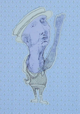 Assembly: Art in the Bar Richard Monahan: The Little Men Fri 16 Jan � Sun 15 March 2009 Opening times: Monday � Sunday 10am�9pm Richard Monahan�s drawings are full of weird and obscure characters, each telling their own story. Many of his works are self-portraits, based on drawings of the artist�s expression in a mirror while others feature characters close to the artist, for instance his baby son. In his portrait series, Monahan uses photocopied reproductions of his original drawings of characters� heads and then draws bodies, arms and legs on to these photocopied heads. These figures are comical as well as unsettling; the heads of his characters are always too large while the bodies and legs are much too small and out of proportion. It lends his figures a humorous side and heightens the focus on his character�s facial expressions. They all tell different stories and convey different moods: some are angry, others sad, some are sleeping while others seem to cry out with laughter. Together, these head portraits form a unitary whole, a group of interacting characters who all appear to have some shared connection with each other, yet at the same time they remain separate entities. In some of Monahan�s large-scale works, character�s heads are also enlarged and the focus again is on the facial expression. The artist creates these works by scratching into layers of paint, thus creating �drawings in paint�. Although these works could be described as paintings, it is important for the artist to emphasise that they also are drawings: "Drawing is a primal act and it is important that anyone seeing my works should know that I consider them all to be drawings. I feel drawing is more accurate to the intentions of the brain and less constrained, in general, than painting. Hence the intimacy one feels when confronted with a drawing." In more recent works (some of which are shown here for the first time), the artist has created a Victorian wallpaper effect: the canvas is full of minutiae details, containing fairytale elements such as unicorns, tigers and peacocks and a girl and boy appear in a magical forest landscape. Human and animal characters in these drawings are often victims and perpetrators at once, it is unclear whether we�re faced with a depiction of their loss of innocence or whether these characters are innocently playing in the Garden of Eden before their fall. Richard Monahan graduated from the Swansea Institute for Higher Education in 2004 and is currently undertaking a PhD in Fine Art (Drawing) at the same institution. Solo shows have included �Richard Monahan�, Ruthin Craft Centre, Ruthin, 2006 and �Drawn�, Glynn Vivian Art Gallery, Swansea, 2005. His work has been featured in a number of group exhibitions, including 'A Collection Of Drawings', Mission Gallery, Swansea 2008; �House of Fogg�, Bath Fringe Festival, Bath, 2006; �Interactive Drawing�, Exposure Gallery, Swansea, 2004; �Mr. Strieca', The Watershed, Bristol, 2004 and 'Dead Horse Art Productions', Tate Durden, Swansea, 2004. The artist won the 1st Student Prize in the Oriel Davies exhibition �RE:Drawing Open 2008� and is currently making new works for a forthcoming major solo exhibition at Oriel Davies which will be on display from 2 May to 27 June 2009, for details please visit www.orieldavies.org Richard Monahan is based in Swansea. For more information about Richard Monahan, please contact the Visual Arts Department on 029 2031 1050, visual.arts@ chapter.org |