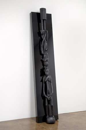 Nathan Mabry's work is the result of careful attention paid to the surprising commonalities and odd idiosyncrasies he activates in a range of divergent cultural material. Pulling forms and ideas from such sources as traditional African art, ancient Peruvian ceramics and American Minimalism, Mabry makes photographs, sculptures and works on paper that are more than just the sum of their parts. Mabry's works move easily between conceptualism and irreverence, bawdy humor and formal conceit, creating a gestalt experience that constantly upends and repositions the viewer's focus, informing both the objects Mabry creates and their relation to art history. Nathan Mabry's exhibition at Cherry and Martin will include new bronze sculptures in which figures derived from Pre-Columbian Moche ceramics surmount stools based on Donald Judd's furniture-making practice. The figures make the 'in-and-out' sign with their fingers, a waggish gesture signifying sexual intercourse that in this work serves in part to align the repetition of sex with the repetition of Minimalism's own raw gestures. Also in the exhibition will be a new large-scale drawing on Mylar with colored pencil and Swarovski crystals. A work in Mabry's Mosaic Skull series, the drawing conjoins the ancient bling of Mexican Mixtec culture from the time of the Spanish conquest with the iconic tooth jewelry of modern hip-hop: the grill. Nathan Mabry received a BFA from the Kansas City Art Institute and a MFA from the University of California, Los Angeles. Mabry will be featured in upcoming exhibitions at ZERO in Milan, Italy and Apocalypse Yesterday curated by David Pagel at the Claremont Graduate University galleries in Claremont, CA. His work has been featured in Red Eye: Los Angeles Artists from the Rubell Family Collection at the Rubell Family Collection, Miami, FL and Thing: New Sculpture from Los Angeles at the Hammer Museum, Los Angeles, CA. He is featured in the March issue of Art & Auction with an "In The Studio" interview with Jori Finkel. |