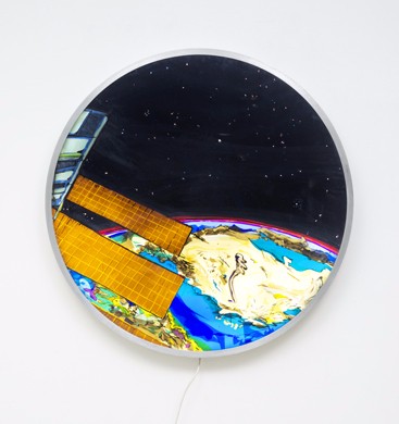 Acetate and vinyl on LED fixture, wiring, MDF, Plexiglas and aluminum 47 in. diameter x 3.5 in. deep, 119.38 cm diameter x 8.89 cm deep |
