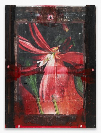 BORDEN CAPALINO ROSES AND DREAMS 02 OCTOBER - 08 NOVEMBER, 2014 Buffalo Bill, die Hauptfigur in dem Film „Das Schweigen der Lämmer” tötet Menschen, weil er ihre Haut will. Er fängt, ermordet und häutet große Frauen, und er nimmt ihnen die Haut ab, um sich selbst einen weiblichen Körperanzug zu nähen. Im Laufe des Films stellt sich heraus, dass sein Motiv für diese Taten darauf zurückgeht, dass er als Anwärter auf eine Geschlechtsumwandlung zurückgewiesen wurde. Dadurch ist sein Versuch, sich eine zweite Haut zu verschaffen, ein Versuch, sich auf andere Art und Weise zu verwandeln. Eine der unheimlichsten Szenen des Films zeigt Buffalo Bill, geschminkt, mit Schmuck behangen und in seinem noch nicht ganz fertigen Anzug, wie er vor dem Spiegel tanzt und vor sich hin murmelt „Willst du mich ficken? Ich würd mich ficken". Capalinos Arbeiten, die als eine Art forensischer Surrealismus beschrieben werden können, beginnen mit einem Sammlungsprozess: Abbildungen von der Internetseite craigslist.com werden zusammengetragen, sortiert und archiviert. Auf formalen Kriterien basierend wählt er anschließend bestimmte Bilder aus, verändert, zerschneidet sie und fügt sie durch Aufbügeln auf der Leinwand wieder neu zusammen. Danach appliziert er verschiedenste Materialien, wobei Capalino Läden für Künstlerbedarf bewusst meidet. Stattdessen findet er sein Material im Supermarkt, in Haushaltswarenläden, Apotheken und im Kleintierhandel. Das Ergebnis ist eine irritierende Verbindung von Fotografie und Skulptur: von den Fotos nimmt der Künstler Teile weg, ergänzt sie im Gegenzug aber auch mit Materialien wie Teer, Kaffee, Jod, getrocknetem Essen und Würmern, die er symmetrisch und bewusst anordnet. In der Vergangenheit hat Capalino seine Bilder größtenteils von Möbelanzeigen aus dem Internet genommen. Diese Fotografien haben alle eines gemeinsam: es sind immer niedrig aufgelöste, anspruchslose JPGs, die Menschen zuhause mit minimalem Aufwand meist aus mehreren Blickwinkeln von ihren gebrauchten (Möbel-)Stücken gemacht haben, um sie zu verkaufen. Sie sind langweilig und faszinierend zugleich, da sie die Allgegenwärtigkeit der Gegenstände, mit denen wir uns umgeben, schonungslos zeigen und gleichzeitig als voyeuristischer Schnappschuss visuellen Zugang zum Heim und den Besitztümern fremder Menschen gewähren. Sie sind oft das letzte Überbleibsel eines dekorativen Arrangements – quasi eine häusliche Totenmaske. Die übermäßige Präsenz von Blumenmustern in den abfotografierten Objekten führt zu der Frage, wie es sein kann, dass sich diese Verzierungen solch einer Beliebtheit erfreuen. Wenn Geburt, Hochzeit und der Tod die Anlässe im Leben sind, zu denen Blumen allgemeinhin kommerzialisiert werden, welche Bedeutung kann dann in dieser ästhetischen Absicht gesehen werden? Der nächste logische Schritt für Capalino war daher, diese breite Streuung sowohl der Blumenmuster als auch der Blumen selbst zu erfassen und zu untersuchen. Der Titel Roses And Dreams geht zurück auf den Namen eines Rennpferdes, den Capalino seiner antiseptischen Anonymität wegen gewählt hat. Er oszilliert zwischen Banalität und Obszönität und ist sowohl eine Andeutung an die Blumenmuster in den Arbeiten als auch ein Ort der Sehnsucht – ob erfüllt oder unerfüllt – der greifbar wird in den Gegenständen, die wir in unserem Leben platzieren. Schlussendlich sind die Werke in Roses And Dreams Teil einer Art dekorativer Archäologie und teilweise – und hier kommen wir zurück auf Buffalo Bill – der Drang, tote Haut zum Tanzen zu bringen. --- Buffalo Bill, the primary antagonist in the film Silence of the Lambs, kills people for their skin. More specifically, he captures, murders, and then flays large women, harvesting their dermis as he sews for himself a female body suit. As the film unfolds, it comes to light that his motive in these actions stems from having been rejected as a candidate for gender reassignment surgery. Thus his attempt to create a second skin, as it were, is his attempt to metamorphosize by other means. One of the most chilling scenes in the film depicts Buffalo Bill, painted, jeweled, and clad in his yet unfinished skin suit, dancing for himself in front of a mirror, muttering “I’d fuck me so hard”. Capalino’s work, which has previously been described as being akin to forensic surrealism, begins as a collection process. Images from craigslist.com are compiled, collated and archived. Based on formal criteria, certain images are then selected, manipulated, dissected, and finally reassembled via a thermal transfer using a clothing iron. Afterwards they are subjected to, and adorned by a material intervention process. Shunning the art store, Capalino instead looks to the supermarket, hardware store, pharmacy, and pet store for his materials. The result is a strange marriage of photography and sculpture: photographic images are both erased and embellished with objects such as tar, coffee, iodine, dehydrated foods, freeze dried shrimp and worms, which are applied in a patterned and redactive manner. In the past, Capalino has used images culled largely from craiglist.com furniture sales. These photographs have a set of uniform qualities: low resolution JPGs of peoples’ objects and homes, shot with minimal effort, often from numerous angles, for the purpose of secondhand commerce. They are both numbing and fascinating as they in tandem expose the ubiquity of the objects with which we surround ourselves, while providing a voyeuristic snapshot that grants visual access to people’s homes and possessions. Often they are the final vestige of a decorative construction – a domestic death mask. The overwhelming presence of floral imagery in the objects represented in these photographs leads to the simple question of why such adornment is so common. If birth, marriage and death are the occasions for which flowers themselves are most commonly commodified, what signifi