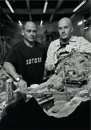 JAKE & DINOS CHAPMAN - SHITROSPECTIVE 20 Nov 2009 to 16 Jan 2010 Contemporary Fine Arts is pleased to announce �Shitrospective�, the first solo exhibition by Jake & Dinos Chapman at the gallery Am Kupfergraben 10. In their recent work Jake & Dinos Chapman replicate the most important sculptures, installations and occurrences from their joint career - in miniature format in cardboard and poster paint. From �Fuckfaces� to �Sex�, from �Uebermensch� to �Little Death Machines� they subsequently deliver the primarily not existing models of their main works. In cardboard they also reconstruct the warehouse fire of the shipping company Momart, in which the first version of their installation �Hell� was destroyed. Thus the Chapmans execute a double somersault in rebuilding inexistent models of former realised sculptures. �Shitrospective� pre-empts the Museum retrospective in a format reflective of the crisis and production costs. Interestingly, it becomes apparent to the observer through the sketch-like laconic execution, the level of iconic quality the most important works by the Chapmans have meanwhile achieved. Here the absence of the demand for perfection lends the sculptures a particular charm. Over the last few years Jake & Dinos Chapman have had solo exhibitions in important institutions � Tate Britain, Tate Liverpool, Kunsthaus Bregenz and CAC Malaga to name but a few. The Chapman brothers live and work in London. |
