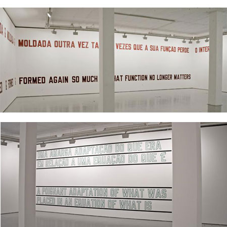 LAWRENCE WEINER �POIGNANT ADAPTATION� Opening 18 March | 22h 19 March to 17 April �In the triangle formed by the author, the work and the public, the latter is not in any way a passive element which would only have a chain reaction, but rather a source of energy that contributes towards making the story itself. The life of the work in history cannot be considered without the participation of those to whom it is aimed�. Hans Robert Jauss The Reader Given the objectivity of Lawrence Weiner�s work, it becomes redundant to reflect upon anything beyond that which is presented to us. In a certain manner this artist has left us longing for to a �light at the end of the tunnel�, something that might help to settle his work within a fixed, easily understandable category. However, all of the efforts undertaken lead further and further from the truth, that his works possess. Lawrence Weiner is absolutely simple in his purposes and in his procedures. Trying to complexify his work takes it away from its aim as Art. In fact, the works he carries out, in a clear concern for materiality, are veritable sculptures in the sense of being objects ready to undergo the processes inherent to any artistic performing. And it is hoped that they will be seen in this way: as materials set out as open to free reception. And it is the reception of the work, rather than its production, that will concern us here. As the critic, as Jauss states, is necessarily a reader before being able to locate or understand the work, or to fundament his own judgement on awareness of its situation. Thus this text will not deal with the artist�s modus operandi (which in fact does not exist) or the formal analysis of the work of art, but instead revolves around an element that is almost always set to one side but the leading role of which is of great importance to us. We are speaking about the spectator, and as this is a matter of works using words, about the reader.2 In Weiner it is not a matter of using metaphors or phrases that intend to create ambiguities, multiple meanings or complex hermetic interpretations, but of demonstrating, through the permeability of language as a medium, how each work of art is the fruit of enormous freedom. Both for the person who produces it and the person who receives it. The work thus has access to existence through the act of interpreting, indifferent to the author�s intentions but focused on its receiver�s expectations and adaptations. The traditional aesthetics of production and representation is replaced by (or rather fused into) an aesthetics of reception and effects. This is the importance of translation in Weiner�s trajectory: making the texts he uses more understandable and accessible, but also recontextualising them in the right setting and in the concrete conditions of their reception. Just as any translation is betrayal, any adaptation is poignant. His work is formed within the perspective of a veritable dialectic: of the work with culture, of the author with the work, of the author with culture, of the work with its receiver, of the author with its receiver, of the receiver with culture, in a more open and infinite interaction of questions and answers. It is this dialogue that states the relationship of art in its broadest sense and life itself. The social dimension that reinforces the importance of the receiver�s experience is that which states the way that the work intervenes on the expectation horizon of our everyday lives, guiding or modifying our view of the world. This is perhaps a mission that is too demagogical for Art, but through this conclusion we can state that without doubt, like the text itself, the opening and virtual nature of his works, in their interactive and performing dimensions, cause some kind of transformation in the person who receives it. This is the wonder of any experience around a reading: when the text stops having a practical function, now opening up to its more reflective dimension, leaving its public perplexed, and showing that, in Art, the process of perception is an end in itself. 1Jauss, Hans Robert, Literaturgeschichte als Provokation (no translation into English available) 2The importance of this in the works of Weiner was always acknowledged by him from the beginning of his sort of manifesto (we prefer declaration of intent) dated 1968: 1. THE ARTIST MAY CONSTRUCT THE PIECE 2. THE PIECE MAY BE FABRICATED 3. THE PIECE NEED NOT TO BE BUILT EACH BEING EQUAL AND CONSISTENT WITH THE INTENT OF THE ARTIST THE DECISION AS TO CONDITION RESTS WITH THE RECEIVER UPON THE OCCASION OF RECEIVERSHIP |