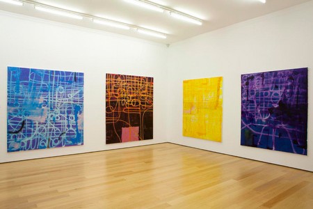 Alex Hubbard "The Basement of Alamo" 29 September - 12 November 2011 Eleni Koroneou Gallery is pleased to present the work of the American artist Alex Hubbard in his first solo exhibition at the Gallery. Alex Hubbard was born 1975 in Toledo, Oregon. He currently lives and works in New York. Alex Hubbard combines in his work performance, painting and video in order to explore transformations between states of order and chaos. His videos are documentations of performances, which mostly take place in his studio. Similar like Roman Signer, Hubbard stages calculated destruction; but whereas Signer’s savor is the suspense, Hubbard’s films are a decoupage of movement, a surfeit of pure, absurd doing. Using objects of everyday use, the videos build compulsively a surface making a collage, in order to nullify it. In the present exhibition «The Basement of Alamo», Alex Hubbard presents a new series of 7 paintings, made in 2011. Employing acrylic, resin and fiberglass the works feature clashing colour-fields, in some parts sloppy with pooled paint, in others almost translucent. The surfaces of the paintings aspire to the character of prints, which might be the non-hierarchical pin board for any object or image. His works in a reductive format emphasize elements of painting and erasure, gesture and removal, depth and flatness. Alex Hubbard has participated in numerous solo and group exhibitions internationally. Recent exhibitions include "2010 – The Whitney Biennial", Whitney Museum of American Art, New York; "Greater New York", PS1 MoMA, New York; "Death Never Sleeps", The Kitchen, New York; "Bingo, wait a minute", Midway Contemporary Art, Minneapolis; "The Nice Thing about Castillo / Corrales", Castillo / Corrales, Paris; "Somebody had to do it", Maccarone, New York; and "Si, es necesario, House of Gaga, Mexico City. |