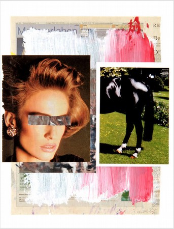 Helmut Middendorf "Observer" Collages & Drawings 7 December 2012 - 23 February 2013 Eleni Koroneou Gallery is pleased to present a new exhibition of Helmut Middendorf. The title of the exhibition is "OBSERVER" and Middendorf will show a selection of collages and drawings from 1994 to 2012. Since the mid 80s and 90s the artist has created many series of collages and drawings, parallel to the paintings. The collages exhibited here, are created from cardboard, photographs, newspaper material, magazine clippings, comics, cheap illustrations, pictures from the Internet, found stuff and painted parts. They show Middendorf’s typical source material from his studio and can become very colorful. Middendorf himself describes the collages with the following words: “Sometimes the collages can become totally abstract, or even satirical, make a political comment or a joke or pay homage; they can also have sexual undertones, be enigmatic, silly, surrealistic, ironic or pretty harsh.” Carefully selected images are his starting point, but as collages they are enhanced or erased, cancelled or fortified. They combine images form high and low culture with painted parts, abstracting reality and recomposing it in a more illusionary way. The drawings show a similar way of how Middendorf works. The source material is related to that of the collages and the main themes of the drawings are the banalities, the kitsch, the wonderful bad taste in fashion and TV. Middendorf transforms the found images into watercolor drawings, reducing reality to selected details. In addition to the collages, in which links and abstraction dominate, in his drawings the focus become very sharp. The main subjects, mostly portraits of humans or animals stand alone against the monochrome background. Helmut Middendorf was born in 1953 in Dinklage, Germany, he currently lives and works in Berlin and Athens. Since his early years in the 80s, when he was part of "Neue Wilde" in Berlin, his work has been shown internationally over three decades in numberless solo and group exhibitions, including participations in Chambres d’ Amis – Collectiepresentatie, S.M.A.C., Gent (2012); Gegenwartskunst, Staedel Museum, Frankfurt (2012); Schlachtpunkt Malerei der 80er Jahre, Kunsthalle Darmstadt (2012); The Last Grand Tour, Museum of Cycladic Art, Athens (2011); Neue Wilde, ARKEN – Museum, Denmark (2010); 40 Jahre Gegenwart Deutsche Bank-Collection, Luxembourg (2010); Neoexpressionistic paintings from Berlin: Gift of Susan and Martin Sanders, New York, Museum of Modern Art Tel Aviv (2010). Middendorf’s works are in over 30 museum collections worldwide. On the occasion of the exhibition the publication of a new catalogue will be presented: HELMUT MIDDENDORF OBSERVER Collages & Drawings Text: Marina Fokidis Kerber Art Publications, Bielefeld, Germany 2012 ISBN 978 - 3 - 86678 - 745 – 2 |