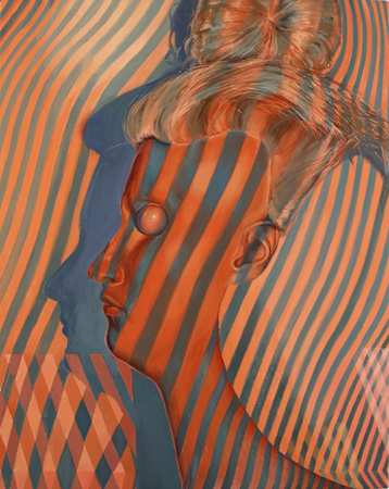 Sascha Braunig 18 Mar 2011 to 30 Apr 2011 Foxy Production presents Sascha Braunig's debut New York solo exhibition. In a series of spectral oil paintings Braunig reimagines the studio portrait. With saturated colors and an hypnotic style, the works reflect upon illusion and surface. In dream-like scenes where repetition and patterning are foregrounded, Braunig's models emit an extrasensory glow. Flaring with reflected color, they are iridescent beings whose very skin seems to be a source of psychic power. Braunig produces uncanny atmospheres, where costume, make-up, and d�cor fragment and engulf the body. In these hallucinatory visions, the subjects� markers of individuality � their faces, gender, even bodies � are masked, overshadowed or absent. The works� dramatic lighting animates their statue-like subjects, giving a sense of both strength and fragility. In Goldwarp, an illuminated mask�s marble-like eyes hint of a semblance of life within. Carapace�s green tones combine a geometric background with an angular metallic form that could be covering a head or a whole body, and whose red lacing � holding closed its only opening - appears like fierce, sensual teeth. And in Chameleon, golden discs swarm upon a painted figure and a dark curtain, distorting the space in a wave of reflection. Braunig�s work recalls at times George Condo�s mining of the history of portraiture, but where Condo often channels Picasso, Braunig�s precursor may be Magritte, with his sharp representational style and his mysterious juxtapositions. Her paintings also evoke the spirit of performance artist Leigh Bowery whose startling costuming often encased his body. Like Bowery�s �looks�, Braunig�s baroque armors enigmatically reveal a dark yet playful wit within. SASCHA BRAUNIG (Qualicum Beach, BC, Canada, 1983) currently lives and works in Portland, ME. She holds a BFA from The Cooper Union, New York, and an MFA in painting from Yale University. Exhibitions include: LISTE, Basel, Switzerland (upcoming); Foxy Production, NY (both solo, 2011); Freudenreich, Berlin; Everard Findlay, Brooklyn, NY (both 2010); ATM Gallery, New York; Philadelphia Institute for Advanced Study, Philadelphia (both 2009); Speed Limit, Lower Manhattan Cultural Council, New York; John Connelly Presents, New York (both 2006); and The Infinite Fill Show, curated by Cory and Jamie Arcangel, Foxy Production, New York (2004). For high resolution jpgs or further information please reply to this email or call +1 212 239 2758. For news: http://www.foxyproduction.com/news/ FOXY PRODUCTION 623 W 27 ST NYC 10001 USA t: +1 212 239 2758 f: +1 212 239 2759 http://www.foxyproduction.com |