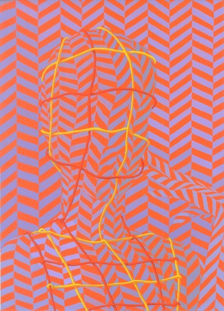 SASCHA BRAUNIG WRISTER, BLISTER, PLASTER January 12 - February 15, 2013 Reception: Saturday, January 12, 3:00 PM - 5:00 PM Foxy Production is very pleased to announce - on its tenth anniversary - the re-opening of the gallery space and Sascha Braunig's solo exhibition Wrister, Blister, Plaster after the gallery's post-Sandy reconstruction. Braunig's exhibition originally opened in late October, just days before the hurricane hit. We are extremely grateful to the many individuals and organizations that have helped re-establish Foxy Production. We are also very happy to report that our neighbors on W 27 Street are re-opening on the same day. WRISTER, BLISTER, PLASTER is Sascha Braunig's second solo exhibition at Foxy Production. Unraveling the figure in unexpected ways, her new series of oil and gouache portraits employ both Op art and baroque elements. The exhibition comprises highly patterned figures who appear interwoven with their environments, and hybrid beings whose bodies and their ornamentation seem indivisible. Braunig’s geometric figures have a visual fluidity, as if their delicate skins can barely contain their bodies. Subject and background merge, creating ambiguity and optical tension. An alliance is forced between flat patterned designs and observed, mimetic representation. The artist’s alien figures refract studio portraiture into hallucinatory scenes. Mixing angst, elegance, and humor, Braunig appropriates the techniques of historical portrait painting. The works' ruffles, masks, hairstyles, and make-up push adornment into a parallel universe of body morphing and new life forms. Wrist Painter - a Greenberg-era term for someone who makes non-expressionist, easel-paintings - depicts an artist holding a maulstick, an aid to steady the hand and prevent it touching a painting’s surface. In this work Braunig honors traditional painting’s attention to detail and its illusionistic tropes. Prop, with its stalk holding up a horizontal figure’s head, is an ambivalent nod towards Dali. Maintaining a rigid, gravity-defying hairdo, the figure is held within an expanding series of diagonal lines. Like a chameleon, the figure takes on the same color and texture as its background, yet it remains in distinct relief from it. Bossy Pins channels classical portraiture into unknown territory, catching an uncanny figure performing a stylized gesture. The subject’s head resembles a mix of brain and hair framed by ornate ruffles. The figure is bathed in green and red lights that luridly intensify the scene’s sense of theatricality and artifice. Fister depicts a fur-coated figure with a brain-like head, an oddly rounded hairpiece, and hands tensed. For the artist, the exposed membrane alludes to the practice of trepanning, the drilling of a hole in the skull to relieve pressure or experience ecstasy. The painting relishes in its improbable yet thoroughly convincing contrasts between fantasy and the real. SASCHA BRAUNIG (Qualicum Beach, BC, Canada, 1983) currently lives and works in Portland, ME. She holds a BFA from Cooper Union, New York, and an MFA from Yale University. Selected exhibitions include: Baltimore Museum of Art; Algus Greenspon, New York (both upcoming, 2013); Bill Brady KC, Kansas City, MO (2012); Bridgehampton Biennial, NY; Simon Oldfield Gallery, London; Foxy Production, New York (solo) (all 2011); Everard Findlay, Brooklyn, NY (both 2010); ATM Gallery, New York; Philadelphia Institute for Advanced Study, Philadelphia (both 2009); Lower Manhattan Cultural Council, New York; John Connelly Presents, New York (both 2006); and The Infinite Fill Show, curated by Cory and Jamie Arcangel (2004). SASCHA BRAUNIG Gallery hours: Tuesday - Saturday, 11-6PM FOXY PRODUCTION 623 W 27 ST NYC 10001 t: +1 212 239 2758 f: +1 212 239 2759 |