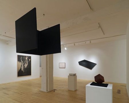 DOUBLE HEMISPHERE HANY ARMANIOUS MICHAEL BELL-SMITH RAFA� BUJNOWSKI SIMONE GILGES DAVID NOONAN April 10 - May 16, 2009 Opening reception: Friday, April 10, 6-8 pm Hours: Tuesday to Saturday, 11-6 pm DOUBLE HEMISPHERE is a group exhibition of collage, sculpture, painting, drawing, and video by HANY ARMANIOUS, MICHAEL BELL-SMITH, RAFA� BUJNOWSKI, SIMONE GILGES, and DAVID NOONAN. The artists infuse pared-down, monochromatic and patterned approaches with a sense of the poetic and the paradoxical. DOUBLE HEMISPHERE includes line tracings of carpet designs by HANY ARMANIOUS; a painterly geometric animation by MICHAEL BELL-SMITH; a lustrous black oil painting by RAFA� BUJNOWSKI; an installation of sculptural elements within a fabric half-cube by SIMONE GILGES; and a grainy, angular silk-screened collage by DAVID NOONAN. A DOUBLE HEMISPHERE map displays two sides of the globe on the one chart; similarly, the works in the exhibition hold apparent opposites within themselves, including abstraction and figuration, hidden and revealed features, and both streamlined and intricate forms. These juxtapositions instill the works� often-minimalist strategies with a drive toward metaphor and lyricism. HANY ARMANIOUS' tracings on paper of carpet patterns are direct and unambiguous actions upon everyday materials. They are also excavations of the ideas embedded within the original designs. Sparking travels into the imaginary, Armanious� drawings repurpose ornamentation, revealing how conventional composition can be reworked and rethought. In a new video from MICHAEL BELL-SMITH, shapes converge and then fragment to the accompaniment of an ambient, anthemic soundtrack. Combining repetition and variation, and flatness and depth, the work recalls the visual and musical language of TV and movie companies� animated logos. It engenders a sense of exhilaration - as the forms come together and the music rises - that quickly dissipates as they shatter and move apart. RAFA� BUJNOWSKI�s black oil painting Lamp Black: Pentagon (7) combines two distinct areas of luminous patterning within a sharply geometric whole. The work�s groove-like texture, its reflective sheen, and its irregular shape transcend pure abstraction: it moves toward a transitional space where associations and sensualities form and dissolve. SIMONE GILGES� installation places individual sculptural items - a solid black cube made from tropical wood, a fragment of a facial mask with an abstracted nose, and a child-like arm - within a deconstructed cube fashioned from fabric. The work�s disparate elements merge to create a charged symbolic system that is underscored by a powerful sense of transience and imbalance. DAVID NOONAN's Untitled, a silkscreen on jute with linen collage, depicts a child at play with a strange puppet. The scene is dominated by the diagonal lines of the child�s teepee playhouse. The work�s rough-hewn texture and its decolored, low-resolution imagery reduce its narrative force, while amplifying its sense of formal and emotional unease. HANY ARMANIOUS (Ismalia, Egypt, 1962) lives and works in Sydney, Australia. He holds a BA in Visual Arts from City Art Institute, Sydney. Selected exhibitions include Contemporary Art Museum, St. Louis MO (solo) (2008); City Gallery, Wellington, New Zealand (solo)(2007); Institute of Modern Art, Brisbane (solo); Monash University Museum of Art, Melbourne; Busan Biennale (all 2006); Ocular Lab Inc., Melbourne (solo); National Gallery of Australia, Canberra (both 2005); Auckland Art Gallery, New Zealand (solo)(2004); Ian Potter Museum, Melbourne (solo)(2002); and UCLA Hammer Museum, Los Angeles (solo)(2001). MICHAEL BELL-SMITH (East Corinth, ME, 1978) lives and works in Brooklyn, NY. He holds a BA in Semiotics from Brown University, Providence RI. Selected exhibitions include the 2008 Liverpool Biennial; The 5th Seoul International Media Biennale; The New Museum, New York; Hirshhorn Museum, Washington DC; Krannert Art Museum, University of Illinois, Urbana-Champaign IL (all 2008); Musee d'Art moderne de la Ville de Paris; Museum of Modern Art, New York (screening); Dallas Center for Contemporary Art (all 2007); Museum of Fine Arts, Lausanne, Switzerland (screening) (2006); and Tate Liverpool, UK (2005). RAFA� BUJNOWSKI (Wadowice, Poland, 1974) lives and works in Krakow, Poland. He studied in architecture at the Krakow University of Technology and graphic arts at Krakow Fine Arts Academy. He and was founder and curator of Galeria Otwarta, Krakow (1998-2001); and co-founded Ladnie artist's group (1995-2001). He was artist-in-residence at Art in General, New York (2004); and won the international art award Kunstpreis Europas Zukunft (2005). He has exhibited at Ibid Projects, London (2008); Galerie Johnen+Schoettle, Cologne; Daniel Hug, Los Angeles (both 2007); Center for Contemporary Art, Warsaw (solo); National Gallery of Art, Warsaw (both 2006); Prague Biennale; The Rubell Family Collection, Miami (both 2005); Raster, Warsaw (2004). SIMONE GILGES (Bonn, Germany, 1973) lives and works in Berlin. Gilges studied visual communication at UdK-Berlin and photography at FH Dortmund. She is a founding member of Honey-Suckle Company (HSC), Berlin; founder of publisher and project space �Neue Dokumente�, Berlin; and publisher of �freier� magazine. Exhibitions include Badischer Kunstverein, Karlsruhe; Kunstverein Hannover (both 2009); Galerie Giti Nourbakhsch, Berlin (solo); pret a pARTager, Dakar, Senegal; Frankfurter Kunstverein, Frankfurt (HSC) (all 2008); Kunstraum Innsbruck; Kunstverein Harburger Bahnhof, Hamburg (solo with HSC) (both 2007); K�nstlerhaus Stuttgart; Kunsthalle Basel, Switzerland (solo with HSC) (all 2006); CRAC Alsace, France (solo); K�nstlerhaus Stuttgart (both 2005); Wilhelm-Lehmbruck Museum, Duisburg (solo) (2002); Kunst-Werke, Berlin (HSC) (2001); PS1 Contemporary Art Center, New York (HSC) (1999); 1st Berlin Biennial (HSC) (1998). DAVID NOONAN (Ballarat,