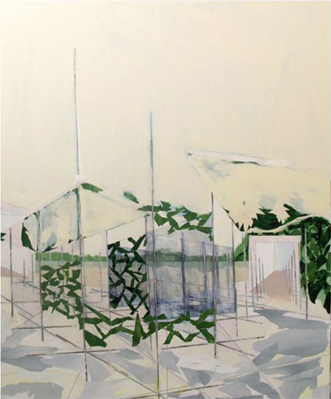 For our first exhibition in our new location at 945 Chung King Rd, Chung King Project is very excited to host the debut solo exhibition by Los Angeles-based artist Dan Bayles (born in 1977). Dan Bayles will present a series of paintings, which further his exploration of the relationship between art and architecture. Each painting is derived from the US plans for the new US embassy in Badgad, currently under construction (see link below). http://www.alertnet.org/thenews/newsdesk/N09435348.htm Working in both paint and collage, Dan Bayles' canvases create abstractions that encapsulate the dissonance, and excitement of a potential metropolitan landscape, echoing the work of Constant and Piranesi. The overall results in unified, balanced compositions on canvas, while supporting distinct areas of specific details. Hence, a closer look reveals impressively intricate surfaces, layered with many different textures of paint, and collage elements. Dan Bayles recently graduated from his MFA at UC Irvine. Past group exhibitions included "Without Sun" curated by Carol Ann Kloranides at Chung King Project, LA and Christopher Grimes gallery, Santa Monica, and ABSTRACTION at Michael Kohn Gallery, West Hollywood. |