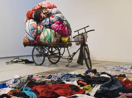 Tricycle cart, used clothes and used bedcovers from China, 295 x 190 (h) cm. Image � the artist. Courtesy GALLRIA CONTINUA |