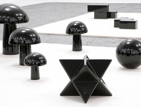 Sobre o Objeto de 8º Grau José Damasceno 17.05.2014 | 14.06.2014 We are pleased to present the exhibition Sobre o Objeto de 8º Grau by José Damasceno. The artist is presenting his most recent installation, homonymous with the title of the show, along with a set of silkscreens and a painting on the wall of the exhibition space. Sobre o Objeto de 8º Grau [On the Object of 8th Degree] is a set of small obsidian sculptures distributed on two rectangular felt mantels on the floor, like recent discoveries of an archaeological site. Damasceno, who frequently uses different kinds of rocks in his sculptures, this time, chose obsidian, which sparked his interest during his trips to Guadalajara. It is a sort of volcanic glass, created by the rapid solidification of magma; found widely in pre-Columbian Mesoamerica, it was used as a mirror as well as a weapon, and was frequently associated to occultism and Aztec rituals. Contrasting with the opacity of the felt, the black reflective surface of each piece of obsidian reflects the surface of each of the other pieces in the exhibition, creating an interplay of mirrors that recalls the short text “La imagen de séptimo grado”, by Argentine writer Macedonio Fernández. In it, the author describes the trip of an image through different reflections (including the memory and pictorial representation) and sets forth the idea that in each reflection the image leaves its own inscription. This situation is similar to that of Estudos Paragráficos II, a set of twelve silkscreens arranged linearly on the wall next to the installation. In these works, the word paragráfico reveals a mediation between the graphic inscription and its possibilities of materialization, underscoring the tension between the bi- and tridimensional, the virtual and the real. Damasceno’s work lies in the borderline zone where the imaginary is multiplied in various reflections of language, and the experience of the real is diluted in these reflections. The aim of Damasceno’s proposal is not, therefore, to present an object of the eighth degree, but to invite the observer to seek it. José Damasceno was born in Rio de Janeiro, where he lives and works. His solo shows have most notably included Coordenadas y Apariciones, Museo Nacional Centro de Arte Reina Sofía, Madrid, Spain (2008); Espace Topographie de l’Art, 37 Festival d’ Automne à Paris, France (2008); Viagem à Lua, 52nd Biennale di Venezia, Brazilian Pavilion, Venice, Italy (2007); and Observation Plan, Museum of Contemporary Art, Chicago, USA (2004). Group shows he has participated in most notably include Cruzamentos: Contemporary Art in Brazil, Wexner Center for the Arts, Ohio, USA (2014); the Biennale of Sydney, Australia (2006); and the XXV Bienal de São Paulo, Brazil (2002). His work figures in various public collections, including Cisneros Fontanals Art Foundation – CIFO, Miami, USA; Colección Jumex, DF, Mexico; Daros-Latinamerica AG, Zurich, Switzerland; Inhotim Centro de Arte Contemporânea, Brumadinho, Brazil; MACBA – Museu d´Art Contemporania de Barcelona, Barcelona, Spain; Museu de Arte Moderna do Rio de Janeiro, Brazil; Museu de Arte Moderna de São Paulo, Brasil; and MoMA, New York, USA. |