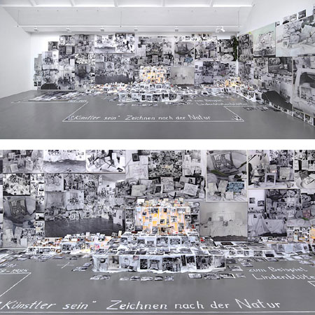 IMAGES - Anna Oppermann Installation view, Barbara Thumm Gallery, 2010 K�nstler sein (Zeichnen nach der Natur, zum Beispiel Lindenbl�tenbl�tter) / Being an artist (Drawing from nature, for example linden blossom petals), 1969-1985 Interpretation: Ute Vorkoeper, Assistenz: Anna Sch�ffler, Foto: Lepkowski Studios, Berlin Anna Oppermann 11 September � 30 October 2010 Opening: Friday, September 10th, 2010, 7-9 pm Barbara Thumm Gallery represents Anna Oppermann's (1940 � 1993) estate since the beginning of 2010. From September 11th to October 30th 2010 Barbara Thumm Gallery will present one of Anna Oppermann�s major "ensembles": "Being an Artist (Drawing from Nature, for Example, Linden Blossom Petals), 1969-1985". This ensemble was shown 1977 in two parts. The main piece was shown at documenta 6, while a further smaller addition was shown at Kunsthalle Hamburg. At gallery Barbara Thumm, these two separate parts were reunited for the first time and reinterpreted in a large format installation by the Anna Oppermann expert Ute Vorkoeper. In the seventies, Anna Oppermann developed a radical and controversial artistic language. Her intricate assemblages of drawings, photographs and objects grew into large scale overboarding spacial installations for which the artist coined the phrase "ensemble". The exhibition catalogue to documenta 6 concludes the following to Anna Oppermann's work: "Anna Oppermann's ensembles embody and produce fields of association that emanate from a simple object. To begin with, as an almost arbitrary positing, there is a linden flower bract: the artist draws this leaf and thereby integrates her own physical position � a protruding knee, the jutting edge of a table � into the drawing. This drawing is then photographed, making the drawing and the photograph the first combinatorial level of the ensemble that determines the systematically induced associations: drawing, being a draughtsman, being an artist, art and society, etc. Earlier photographs are incorporated into the higher-level context of larger tableaus, only to revert to being details in later, even more extensive photographs. Oppermann's horror vacui causes the drawn, photographed and quoted details to expand over many years into 'object altars'." Biographical information to Anna Oppermann: Anna Oppermann (1940 - 1993) gained international fame during the seventies. She was featured at documenta 6 (1977), at the Venice Biennial in the overview show "Art of the seventies" (1980) as well as documenta 8 (1987). In 2007/2008 the W�rttembergische Kunstverein Stuttgart as well as the Generali Foundation in Vienna presented a large retrospective of Anna Oppermann's ensemble art and published an extensive catalogue on her pieces for the first time after the artist's death. (Text: Galerie Barbara Thumm und artpress) |