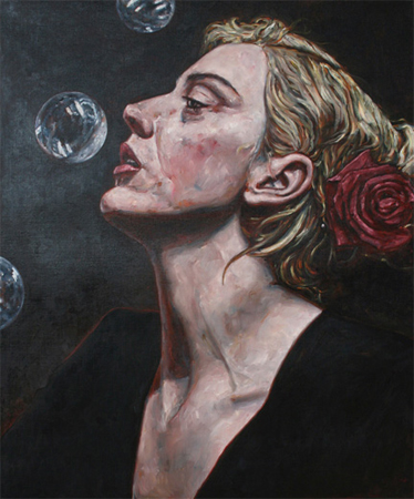 ALEX TENNIGKEIT: Para Bellum Ausstellungsdauer/ Duration: 22. Oktober - 20. November 2010 Er�ffnung / Opening: Fr., 22. Oktober, 18:00 - 22:00 Uhr english version below Die Galerie Jette Rudolph freut sich, ihre vierte Soloausstellung der K�nstlerin Alex Tennigkeit mit neuen Werken der Malerei ank�ndigen zu d�rfen. Der Ausstellungstitel �Para Bellum� rekurriert auf das gek�rzte lateinische Sprichwort �Sic vis pacem para bellum.� (�bersetzung ins Deutsche: �Wenn du den Frieden willst, bereite dich zum Krieg!�) aus den politisch- ideologischen �Epitoma rei militaris� des r�mischen Kriegstheoretikers Vegetius (4.Jh.) und klingt angesichts der bildnerischen Umsetzung Tennigkeits wie ein Schlachtruf im Sinne eines k�nstlerisch wie psychologisch aber auch geschlechterspezifisch motivierten Aufstands. In ihren neuesten klein- und gro�formatigen Arbeiten greift Alex Tennigkeit mit ungewohnt barockem Duktus das Stilmittel der Allegorie auf, um in der Inszenierung verschiedenster Rollenspiele ein Spiegelbild ihrer selbst im Kontext imagin�rer Objekte, Protagonisten und Maskeraden wiederzugeben. Eine Werkserie mit �Selbst als Allegorie: (...)� betitelt zeigt die K�nstlerin mal als Sinnbild der Verf�hrung mit herzf�rmiger roter Praline an den Lippen, die das Begehren eines hinter ihr befindlichen und so bedrohlich wie unbeholfen wirkenden blau- gr�nen Monsters weckt oder als Metapher f�r die Schande, wenn sie dem Betrachter ihr fratzenhaftes Grinsen entgegenwirft, das beiderseits Berechtigung findet, da ein taubenblauer Federnkranz das Gesicht der K�nstlerin volumin�s umrahmt. Ein tabuloser Humor wie seelische Grausamkeiten sind Tennigkeits Instrumente, um mit einer Vernunft ohne Grenzen aufzudecken, wo raffinierte und gepflegte Sch�nheit heute als eine medial konstruierte Maskerade auftritt, uns gefangen nimmt und verf�hrt. Die grossen Leinw�nde Tennigkeits �ffnen den Blick des Betrachters auf jene f�r die K�nstlerin so typischen mehrfigurigen und dramaturgisch minuti�s komponierten B�hnenr�ume. Die zentralen Motive sind hier eine stigmatisierte monumentale Hand und die von stark divergierenden Bewegungen bestimmte Bettszene eines "S�nders", womit die K�nstlerin auf die christlich- ikonographischen Vorlagen von Devotionalien- und Votivbildern referiert. Die Funktion der pers�nlichen Andacht wird auch hier vermittels der Gattung des Selbstportr�ts inszeniert und in ihrer Deutung neben kunsthistorisch- ikonographischen Symbolen wie der Schlange f�r die Erbs�nde durch zeitgen�ssische Interpretationen erg�nzt wie bspw. die Verf�hrung des m�nnlichen S�nders durch Geld als auch seinem Scheitern an der vermeintlich selbstbewu�ten Frau der modernen Medien- und Popkultur. Alex Tennigkeit zeigt in ihren neuen Arbeiten den Menschen in seiner Wirklichkeit, in seinem Kampf mit der irdischen Zeitlichkeit: sei es auf seinem Sterbebett eingefasst vom teuflischen Zerren der mannigfaltigen Attraktionen oder Umgeben von schwebenden Seifenblasen kurz vor dem Zerplatzen. Letztendlich bleibt der Mensch in Tennigkeits Bilderwelten beherrscht von seinen Naturtrieben und Leidenschaften, verstrickt in die Materie, zum Genuss verf�hrt durch allgegenw�rtige sinnliche Kr�fte, der Tr�ume beraubt- ein Gespenst seiner Selbst. Tennigkeits Bilder schauen uns an. Sie werden zu einer Parabel des Lebens- Para Bellum! �Die Malerei ist hier im Einsatz einer kritisch-�sthetischen Distanzierungsstrategie, und es ist bezeichnend und eine spezifische Qualit�t der Bilder von Alex Tennigkeit, dass die Identit�t der Autorin �ber das �Selbstportr�t� weit hinausgeht und in psychologischer Intensit�t den sozialen Fortschritt �ber den Spa� an einer zynischen Geschichte zu inszenieren wei�.� (Axel Heil �ber die Malerei A. Tennigkeits, in: �Strong Woman- Dead Man�, Kat. Ursurper�s Choice, Kerber Verlag, Berlin 2009) Alex Tennigkeit ist 1976 in Heilbron geboren und lebt und arbeitet in Berlin. english version The Jette Rudolph Gallery is pleased to announce its fourth solo exhibition by artist Alex Tennigkeit, which features new paintings. The exhibition�s title �Para Bellum� is taken from the Latin adage �Sic vis pacem para bellum� (�If you wish for peace, prepare for war�), which can be found in the political, ideological treatise �Epitoma rei militaris� ("Concerning Military Matters") by Roman military theorist Vegetius (4th century A.D.). In view of Tennigkeit�s images, the exhibition�s title resounds like a battle cry and one that is inspired by an artistic, psychological and gender- specific rebellion. In her latest series of small and large-format self-portraits that have an unusual Baroque style, Alex Tennigkeit�s stylistic means is the allegory, which she uses to stage various role-playing games involving imaginary objects, protagonists and masquerades, thereby rendering images of herself. In the series of works entitled �Selbst als Allegorie: (...)� (�Myself as allegory: (...)�), there is one painting featuring the artist as a symbol of temptation with a red, heart-shaped praline on her lips, which awakens desire in the threatening yet equally awkward-looking blue-green monster standing behind her; and in another work, the artist is portrayed as a metaphor for shame when she offers the viewer a grotesque grin � justified on both sides � since a giant dove-blue wreath of feathers frames the artist�s face. Tabooless humor and mental cruelty are Tennigkeit�s tools, which she uses with a sense of reason that knows no limits, to uncover where, today, refined and cultivated beauty surfaces as a masquerade constructed by the media, and as something that captivates and seduces us. For viewers, Tennigkeit�s large canvases open onto staged areas that � with several figures and their detailed dramaturgy � are typical for the artist. Here, the central motifs are a stigmat