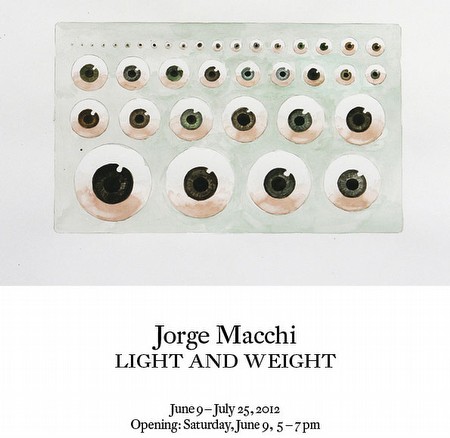 JORGE MACCHI Light and Weight June 10 to July 28, 2012 Opening: June 9, 6 – 8 pm Galerie Peter Kilchmann is pleased to present new works by Argentinean artist Jorge Macchi. The artist was born in Buenos Aires in 1963 and continues to live and work there. “Light and Weight” is the third single exhibition of Jorge Macchi at Galerie Peter Kilchmann. The title “Light and Weight” can be understood in two ways, with “Light” referring both to the visual sensation and the definition of weight – lightness as opposed to heaviness. The double literal sense of the term takes us straight to the center of Jorge Macchi ʼ s work. His objects, drawings and installations can always be viewed and read is different ways. In the exhibition this becomes apparent from the start, as one enters the gallery space and encounters a series of small and medium-sized works on paper. In his drawings and watercolor paintings, Jorge Macchi uses the fluidity of the medium to capture images as he envisions them. Macchi ʼ s drawings are above all simple and without context. The images float on the white space of the paper. The fluidity of the medium stands in stark contrast to the geometric motif of the circle template, which appears in several works and is shown in various conditions: Eyes are added; the circle template is blurred, merged, or burned (See invitation card: Peep, 2011, watercolor and pencil on paper, 29,5 x 42 cm; Spillage , 2011, watercolor on paper, 30 x 40 cm). To the side of these works a tangible template is shown – a handkerchief showing circle holes in various sizes and embroidered with numbers. Titled Air the object playfully alludes to the volatility of the air passing through the perforations in the fabric, rendering the drawing aid useless (2012, fabric and cotton thread, Ed. of 6, 16 x 27 cm). The new sculpture Illumination captures oneʼ s attention immediately upon entering the second space. Seemingly effortless a pointy star balances itself on the ground, and only a second look reveals the weight of the material: Cement. It takes a third glance to recognize the true nature of the object: This is no star, but rather a bundle of light beams that belong to seven flashlights (2012, 7 flashlights and cement, 285 x 285 x 285 cm). That an artwork seems to change before our eyes is an inherent quality of Jorge Macchi ʼ s work. This is also true of the video installation XYZ , 2012. Projected directly into a corner, the 1-channel projection shows a Swiss railway station clock, with its ʼ clock hands aligning themselves with the space coordinates. Whoever has seen Jorge Macchi ʼs artwork 10:51 knows that according to the artist it is quite possible for time and space to interfere with each other. If the other works are a matter of light, then Projection , 2012, addresses the issue of weight. The room specific installation occupies the entire third room and is made up of a partition wall (250 x 340 cm), which is tilted backwards and held in place only by a series of thin steel cables coming out of one point high up on the opposite wall. Another artwork of Jorge Macchi will be shown in the public space in Zurich as part of the exhibition project “Art and the City”. Further exhibition participations of Jorge Macchi in 2012 include the Biennial of Sydney, Australia, and the Biennial of Liverpool, England. In 2011 the large single exhibition “Music Stands Still” was shown at Stedelijk Museum voor Actuelle Kunst in Ghent. The exhibition catalog can be obtained through the gallery. LOS CARPINTEROS Galerie Peter Kilchmann is pleased to start its liaison with Los Carpinteros with a presentation of new works in the rear project space. The collective Los Carpinteros is made up of Cuban artists Marco Antonio Castillo Valdés and Dagoberto Rodríguez Sánchez, who live and work in Havana and Madrid. A large single exhibition of Los Carpinteros at the gallery will follow in the summer of 2013. The presentation of the largeformat works on paper, such as M.A.E.S. Bulgaria – Lego , 2012 (See invitation card: Watercolor on paper, 113 x 199 cm) coincides with the artists ʼ participation in “Art and the City”. As part of the citywide exhibition in public space, Los Carpinteros will be showing large brick tower sculptures on the nearby Escher-Wyss-Platz. The single exhibition “Silence your eyes” is on view at the Kunstmuseum Thun, Switzerland, until July and will travel on to Kunstverein Hannover, Germany in December 2012. A catalog will be published on the occasion, and is available through the gallery along with further publications. Further press material and images can be obtained through the gallery. The artists will be present for the opening. JORGE MACCHI Light and Weight 10. Juni bis 28. Juli, 2012 Eröffnung: 9. Juni, 18 – 20h Galerie Peter Kilchmann freut sich, neue Werke des argentinischen Künstlers Jorge Macchi zu präsentieren. Jorge Macchi wurde 1963 in Buenos Aires geboren, wo er heute lebt und arbeitet. „Light and Weight“ ist die dritte Einzelausstellung des Künstlers in der Galerie Peter Kilchmann. Die Präsentation von Jorge Macchi steht unter den Begriffen „Light“ und „Weight“, – wobei das englische Wort „Light“ sowohl Licht als auch Leichtigkeit bedeutet. Der doppelte Wortsinn zielt bereits ins Herz von Jorge Macchis Werk. Seine Objekte, Zeichnungen und Installationen können immer auf verschiedene Arten betrachtet und gelesen werden. In der Ausstellung zeigt sich dies im ersten Raum anhand einer Serie von Arbeiten auf Papier. In seinen Zeichnungen und Aquarellen hält Jorge Macchi die Bilder so fest, wie sie in seiner Vorstellung auftauchen. Macchis Zeichnungen sind simpel, sie stehen in keinem Kontext. Die Fluidität des Mediums steht dabei in Kontrast zum geometrischen Motiv der Kreisschablone, welches in mehreren Werken auftaucht und verschiedene Zustände annimmt: Augen werden hinzugefügt, die Kreisschablone verwischt, vermengt, verbran