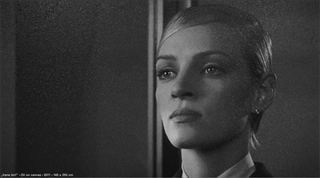 Davide La Rocca - STILLS May 27, 2011 - Jul 16, 2011 From May 27, 2011 on, Galerie Voss will show new works by Davide La Rocca. Having excusively used film stills from David Cronenberg�s movie �Existenz� as motifs for his works until now, he now extends his oeuvre by using new motifs as well as new techniques. In the new "STILLS"-series of paintings the central theme is the film by Andrew Niccol, "GATTACA". Alongside his known paintings in different shades of gray, that are calculated by the computer and applied on the canvas point by point just like pixels on the screen, the exhibition �STILLS� will show works, that are quite related to the principle of Op Art. Those works are consequently painted in black on white or white on black and combine abstract, optical paintings with portraits of people in everyday situations. The exhibition will end on July 16, 2011. |