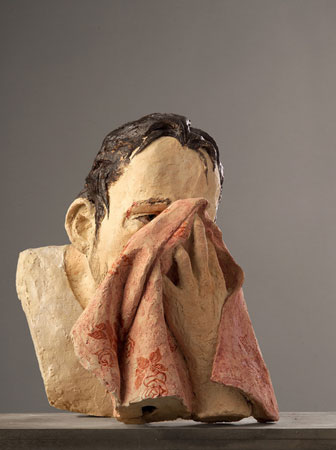 Silke Rehberg: Stationen 1,4,6,7,11,12,13,14 13.06.2008 - 12.07.2008 Verkopfung auf der Via Dolorosa Silke Rehbergs au�ergew�hnlicher Kreuzweg Sp�testens mit der Moderne, die auf Autonomie pochte, geriet Kunst im Kirchenraum, geriet die Darstellung religi�ser Themen ins Abseits. In den letzten Jahren jedoch kann man allerorten eine erneute Zuwendung der Gegenwartskunst zur Sph�re des Sakralen beobachten. Diesem Trend widmet derzeit das Pariser Centre Pompidou eine gro�e Themenschau mit dem Titel "Traces du sacr�". Der Kreuzweg, den Silke Rehberg zun�chst in der Kirche St. Theresia, M�nster, anbrachte und den sie nun, in einer eigenst�ndigen Serie, in der Galerie Voss zeigt, scheint sich auf den ersten Blick bruchlos in dieses Religion-Revival der zeitgen�ssischen Kunst einzuf�gen. Es w�re jedoch voreilig, die Skulpturen-Folge auf eine solche Deutung festzulegen. Zwar rekapituliert die Reihe der acht farbig gefassten Keramikb�sten, f�r die der Wiener Schauspieler Karl Markovic Modell sa�, in der Tat den Leidenspfad Christi, zwar kann man hier den Weg Jesu von der Verurteilung durch Pontius Pilatus bis zum Tod und zur Grablegung im Medium des zeitgen�ssischen Kunstwerks erneut zur�cklegen. Zugleich jedoch tut die Bildhauerin alles, um eine modische religi�se Emotionalit�t zur�ckzudr�ngen, wenn nicht gar aus ihrer Darstellung zu verbannen. Das Martyrium auf der Via Dolorosa in Jerusalem ist nur der Anlass f�r eine Vergegenw�rtigung einer prinzipiellen menschlichen Situation. Hierzu setzt Silke Rehberg konsequent auf Reduktion. Das Kreuz, zentrales Folterinstrument oder ikonographisches Atttribut des Leidensweges, fehlt v�llig. Reduktion auch in der Darbietung des K�rperlichen: Die K�nstlerin zeigt Christus ausschlie�lich als Torso, als reines Kopf- und Schulterst�ck, montiert auf Holzplatten, die zudem mit Holzlaminat �berzogen sind � Rehberg selbst bezeichnet die Sockelschrumpfform als "Schnittfl�che zwischen dem dargestellten Teil der Person und dem K�rper". Die programmatische Verkopfung, die das Augenmerk zwangsl�ufig auf den nuancierten Wandel der Mimik zwischen den einzelnen Stationen lenkt, spart das Aktionspotenzial des aufw�hlenden Geschehens mit Bedacht aus: Die drei St�rze, die Annagelung ans Kreuz, die Kreuzabnahme, das alles wird nicht gezeigt. Dieser Mischung aus Understatement und Lakonie, ohnehin kennzeichnend f�r das Werk der 1963 geborenen K�nstlerin, Meistersch�lerin von Timm Ulrichs, entspricht die Zur�ckhaltung, was die Darstellung von Gef�hlen angeht. Hier weicht Silke Rehberg krass ab von der Ikonographie des Kreuzwegs, die seit dem 15. Jahrhundert eng mit der Passionsfr�mmigkeit verbunden war und demzufolge drastische Gem�tsbewegungen in den Vordergrund r�ckte. Obendrein ist allzu aufdringlicher Psychologisierung ein Riegel vorgeschoben, weil die pr�zise � und v�llig unkonventionelle � formale Durcharbeitung des altehrw�rdigen Themas unsere Aufmerksamkeit mindestens so stark in Anspruch nimmt wie der emotionale Aspekt des Leidens. Anders als �blich reiht Silke Rehberg die Stationen nicht nebeneinander � die H�ngung der Skulpturenserie bildet eine Installation, die sich subtil auf die r�umliche Situierung der Passion Christi einl�sst. Ein Beispiel: W�hrend die Szene der Kreuzabnahme, wo uns Jesus in k�hner Positur kopf�ber gezeigt wird, im oberen Bereich der Wand h�ngt, ist jene B�ste, die die Grablegung veranschaulicht, v�llig plausibel zur Bodenarbeit mutiert. Solche souver�nen gestalterischen Akzente �berlagern bei Silke Rehbergs Kreuzweg-Folge die biblischen Assoziationen in einem solchen Ma�e, dass der Betrachter sich fragen muss, was genau der Grund ist, weshalb sich die K�nstlerin, von der wir sonst Arbeiten �ber die Konsum- und Museumswelt kennen, auf das religi�se Thema einl�sst. Zumal der Christus, mit dem uns die Bildhauerin konfrontiert, ausgesprochen weltlich, gar 'normal' anmutet � ein Typ wie du und ich, m�chte man fast sagen. M�glicherweise liegt darin ja gerade ein Schl�ssel zum Verst�ndnis des Kunstwerks. In Silke Rehbergs Keramikplastiken verk�rpert sich eine ausgesprochen gegl�ckte Synthese � zwischen Heiligem und Allzumenschlichem, zwischen Tuchf�hlung mit der Kunstgeschichte und Weiterentwicklung des aktuellen Realismus. Kunst, dies belegen Rehbergs Skulpturen, muss nicht polarisieren, um Polares sinnf�llig zu vermitteln. J�rg Restorff |
