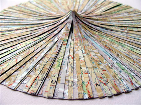 Shannon Rankin - Disperse / Displace Dec 03, 2010 - Feb 12, 2011 Opening: Friday, December 3, 2010, at 7 p.m Shannon Rankin's works are installations, collages and drawings that use the language of maps to explore the connections among geological and biological processes, patterns in nature, geometry and anatomy. Using a variety of distinct styles she intricately cuts, scores, wrinkles, layers, folds, paints and pins maps to produce revised versions that often become more like the terrains they represent. These new geographies explore notions of place, perception and experience, suggesting the potential for a broader landscape and inviting viewers to examine their relationships with each other and the world we share. Shannon Rankin lives and works in Maine (Pennsylvania), USA |
