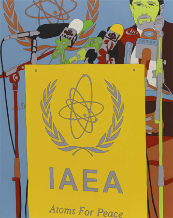 Georg Kargl Fine Arts Lisa Ruyter Atoms For Peace 14/11/2008-11/01/2009 Georg Kargl Box Nicole Wermers Public Rain Fries 14/11/2008-11/01/2009 LISA RUYTER Atoms for Peace Georg Kargl Fine Arts Exhibition dates: November 14, 2008 � January 11, 2009 ARTIST TO PRODUCE PAINTINGS BASED ON COVERAGE OF IAEA BOARD OF GOVERNORS MEETINGS IN VIENNA Artist Lisa Ruyter has been covering International Atomic Energy Agency (IAEA) Board of Governors meetings as an invited journalist. Her reporting will take the form of a series of new paintings based on photographs made at official events of the IAEA. The completed works will be shown this November in a solo exhibition at her representative gallery in Vienna, Georg Kargl Fine Arts. This is not the first time Ruyter has blurred the lines between artist and reporter. In 2004 at the request of [Andy Warhol`s] Interview Magazine then Editor-In-Chief Ingrid Sischy, Ruyter covered the Paris Couture Shows for the magazine and the resultant paintings appeared in Dec/Jan 2005 issue and were the focus of a highly acclaimed 2005 solo show in Berlin. Since 1996, Lisa Ruyter's paintings have been based on individual photographs taken by the artist and have formed a map of her movements around the globe as well as her personal development. Ruyter selects a small percentage of these pictures and begins the process of fixing them in the medium of painting. She "transcribes" the photographs onto the picture plane, selects the areas of the image that she wishes to render, leaving out details she thinks trivial, while focusing on others. Once the drawing is in place, Ruyter begins to map out colors within the structure of that drawing. The final fixing of the images occurs when Ruyter, usually in a single sitting, redraws the lines with a paint pen, bringing the image into sharp focus. The power of Ruyters paintings is in the way she takes on seemingly ordinary images and makes them extraordinary. What at first appear simple but giant paint-by-number works slowly reveal themselves to be complex arrangements of flat colors with poignant, powerful subject matter. The effect freezes the narrative and pushes it toward abstraction, and highlights potential subtexts. In these new works, Lisa Ruyter questions again the relationship of subject matter and visual effect. An IAEA meeting perhaps looks like an ordinary occasion, but these particular meetings are charged with the undercurrent of one of the largest news stories of this moment in time. She approaches the �nuclear� story with the same eye and process that she did with Haute Couture. The results of this exploration are images that seem directly lifted from the pages of a popular graphic novel. For what I want to do, so expresses Lisa Ruyter, it is important to avoid encouraging a singular hegemonic reading at all costs. By that I mean that one thing has to be dominating the reading, rather than allowing all of the elements to carry information. It is certainly possible to make such a determined reading, but there is enough on the surface of the paintings and in the subject matter to always add an alternative to the reading. About Lisa Ruyter Lisa Ruyter, an American, 40, lives and works in Vienna. The artist has shown her work in galleries and museums the world over including, among others, the Museum of Modern Art (New York), the San Francisco Museum of Modern Art (USA), the Elgiz Museum of Contemporary Art (Istanbul), the Denver Art Museum (USA), Collection le Consortium (Dijon, France), La Colecci�n Jumex (M�xico), the Essl Collection (Klosterneuburg/Vienna), and Valencia Arte Contempor�neo (Spain). Lisa Ruyter has had more than twenty-five solo exhibitions in leading galleries around the world. She is represented exclusively by Georg Kargl Fine Arts (Vienna), Galerie Thaddaeus Ropac (Salzburg/Paris), Taka Ishii Gallery (Tokyo), and The Breeder (Athens). Atoms for Peace is her third solo show at Georg Kargl Fine Arts after 2001 and 2003. About the IAEA Headquartered at the Vienna International Centre in Vienna, Austria, The International Atomic Energy Agency (IAEA) is the world`s foremost forum for scientific and technical cooperation in the peaceful use of nuclear technology. Established in 1957 as an independent organization under the United Nations, the IAEA represents the realization of US President Dwight D. Eisenhower`s visionary �Atoms for Peace� speech to the UN General Assembly in 1953, wherein he proposed the creation of an international body to both control and promote the use of atomic energy. Today, the IAEA`s broad spectrum of services and activities is based on the needs of its 144 Member States. IAEA programs and budgets are set through decisions of ist 35-member Board of Governors and the General Conference of all Member States. The Board of Governors generally meets five times per year. It examines and makes recommendations to the General Conference on the IAEA`s accounts, programs and budget and considers applications for membership. It also approves safeguards agreements and the publication of the IAEA`s safety standards, and has responsibility for appointing the Director General with the approval of the General Conference. In case of a country`s non-compliance with its safeguards commitments, the Board decides upon further steps, ranging from a call for clarification to a possible referral to the United Nations Security Council. Recent meetings of the Board have focused on the Iranian nuclear issue and attempts to determine the full nature of Iran`s nuclear program. Text by: Timothy Hartley Smith www.georgkargl.com press contact: [email protected] |