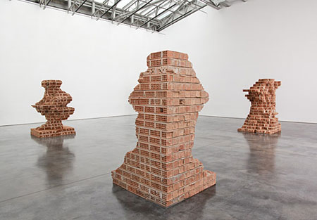 Dami�n Ortega "CAPITAL Less" September 18 - October 31, 2009 Opening Thursday September 17, 5:30-7:30pm 530 West 21 Street New York Gladstone Gallery is pleased to announce its first exhibition with artist Dami�n Ortega. Beginning his career as a political cartoonist, Ortega teases out the social conflicts embedded in even the most banal objects. In his films, sculptures, and other works he deconstructs the economic and political relationships bound together in commodities ranging from automobiles to tools. The creation of these whimsical new spatial relationships reacts with the viewer to establish a demystified reading of the history of the object leaving only its social significations intact. In this new body of work, Ortega created a series of concrete and brick blocks by pressure sanding them into irregular shapes. Equating the loss of material with both geological erosion and the waste of capital, Ortega conflates the action of creating sculpture with an economics of positive and negative spaces. In this case, the economic structure is contingent with form and the process of creating sculpture. His use of bricks allow for further pockets of space within the sculpture recalling both the regular geometry of modernist urban planning, but also to osseous tissue like bone which is composed around tiny spaces. In another series of sculpture, Ortega casts ventilation hoses to appear as post-industrial fossils. These coiled works recall both urban detritus but also the organic coils of insects and worms. In both series of sculptures, Pre-Columbian antecedents mix within the modernist/industrial aesthetics and quasi-organic forms to reconsider the varied anthropological, artistic, and political strains that create urban environments. Dami�n Ortega was born in 1967 in Mexico and currently lives and works in Berlin. He has had solo exhibitions at various international venues such as the Museum of Contemporary Art, Los Angeles; Tate Modern, London; Museu da Arte Pampulha, Belo Horizonte, Brazil; Kunsthalle Basel; and Institute of Contemporary Art, Philadelphia; Centre Pompidou, Paris. He has been included in various prominent group exhibitions including the 2003 Venice Biennale, the 4th Berlin Biennial, and the 2006 Sao Paulo Biennial. This fall his work will be the subject of a retrospective at the Institute of Contemporary Art, Boston, which will be accompanied by a catalogue published in coordination with Rizzoli. |