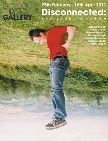 Disconnected: everyday tension 25th February � 16th April 2011 �disconnected�adrift in a relentless stream of social global media� updated� informed� with an understanding of all the pressing issues� armchair managers, water-cooler brokers, bus-shelter chief executives� omnipresent�knowing all� liked�blissfully disconnected from the neighbours� jobs in balance� faith blurred � suspended, powered up� disenchanted� beyond the rose tinged sex, drugs and violence of the rural idle� defined by the warmth and safety of negative equity� Disconnected: everyday tension is an exhibition of works by Maurice Doherty, Colm Clarke, Deirdre McKenna, Claire Morgan, Brendan O�Neill, Nicholas Keogh and Lorraine Burrell; exploring a range of observations and strategies engaged with rethinking superficial assumptions and contemporary shortcuts. About the artists Lorraine Burrell works in video and photography. She completed an MFA at the University of Ulster in 2005 and exhibits both nationally and internationally including Intersection: Globalization and Identity, Youkobo Art Space, Tokyo; Video Festival 07, Valencia, Spain and Engaged in Recreation, Borusan Culture and Art Centre, Istanbul. Her work is represented in various collections including the University of Ulster, Belfast. At present Burrell is represented by The Third Space Gallery, Belfast. Colm Clarke is an artist based in Belfast creating actions, sonic scores, and situations. He received a BA (hons) Fine Art from University of Ulster (2006) and was a co-director of Catalyst Arts between 2006 and 2008. He currently sits on the board of Bbeyond and is collaborative organiser with A4 sounds & MOOK collectives. Clarke has created actions locally and internationally with his live work featured at Arts Electronica, Belgrade Triennial, Art Karavan and Exist-ence. Clarke develops his approach as a tactile strategy focusing on the body and the relationship between the individual and the environment. He is interested in phenomena such as vibration and resonance in considering the mechanisms of entanglement and aesthetics of power. Maurice Doherty (b.1972) graduated from the University of Ulster, Belfast (1997) and went on to complete a Masters of Fine Art at Glasgow School of Art in 2001. Recent group exhibitions include: Beursschouwburg Kunstencentrum, Brussels (2010), MMX, Berlin (2010), Vulpes Vulpes, London (2010), The Project Room, Glasgow (2010), The City Art Rooms, Auckland (2009), and The Scottish National Gallery of Modern Art, Edinburgh (2009). Waiting is a video installation by Maurice Doherty, in which five waitresses have been employed to stand holding a tray of filled champagne glasses for as long as possible. Owing to the weight of the trays, the physical exertion and fatigue of each waitress increases as time moves on. Recorded as a single shot and presented life-size, voyeuristic implication becomes an integral part of the installation and synonymous to the protagonist�s travails. Nicholas Keogh (b. 1977) studied at the University of The West of England where he received a BA (Hons) in Fine Art in Context. Keogh lives and works in Belfast and is based at Lawrence Street Workshops. In recent years Nicky Keogh has participated in Experience Pommery #5: L'art en Europe 2008, Venice Biennale 2005. He has also exhibited internationally in New York, Chicago, San Sebastian and Lisbon. Deirdre McKenna (b.1973) is a Belfast based visual artist. McKenna studied Fine Art at the RTC Sligo, and then at the University of Ulster, Belfast. She acted as a co-director of Catalyst Arts between 2002 and 2004, exhibiting, organising and collaborating. McKenna returned to the University of Ulster to complete her Masters in Fine Art graduating in 2007. She received the Royal Ulster Academy�s Outstanding Student Award and the Dean�s Prize for her work. McKenna is a studio holder at Flax Art Studios, Belfast. Her work is housed in the Arts Council of Northern Ireland collection, in addition to numerous private collections. The work McKenna produces is often highly detailed with a personal narrative. Having trained as a painter, McKenna�s work lives somewhere between painting and sculpture with a strong emphasis on image making. She draws on the elevation of everyday situations and stories. Claire Morgan was born in Belfast and is now living in London. She has exhibited internationally, with solo and group shows in the UK and Europe, and museum shows in US and Australia. In 2004, Claire won awards from the Royal British Society of Sculptors and in 2006 was awarded first prize in the Premio Fondazione Arnaldo Pomodoro, Milan. In 2008, Gone With The Wind, shown at The Laing Gallery, received acclaim. Morgan�s work is concerned with the notion of change, the passing of time, and the transience of everything around us. There is a sense of fragility and a lack of solidity that carries through her practice. Animals, birds and insects have been present in her recent sculptures, with the use of suspense to create something akin to freeze frames. The evidence of gravity - or lack of it - inherent in these scenarios is what brings them to life, or death. Brendan O�Neill (b.1971) studied Fine Art at the University of Hertfordshire from 1994�1997 and on the MFA course at the University of Ulster from 2002�2004. O�Neill worked as a visiting lecturer in the Fine Art Department at the University of Hertfordshire from 1999�2002 and was awarded a three-year studio fellowship at the Digswell Art Trust (1998-2001). He also co-directed at Catalyst Arts, Belfast, from 2004�2007. O'Neill uses artistic practice as a tool for examining our perception of reality as well as our relationship to culture and its productions. His work explores the iconography of evangelism; "I am interested in the ways in which art and faith are connected and in the process of how images and objects are endowed with meaning beyond their materiality