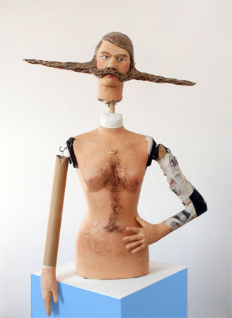 Umlaut Andrew Hayward, Kerri Meehan, Paul Millhouse-Smith, Stuart Morrison, Yadz Odedina, Leonardo Ulian, Laban Underhill and Thomas Wright Private view: Thursday 25th June 2009, 6-9pm Exhibition dates: 26th June - 25th July 2009 Hales Gallery is pleased to present Umlaut, an exhibition curated by Stuart Morrison. This is the forth in a series of summer shows where the gallery branches out from it�s regular exhibition programme and provides the opportunity for young independent curators, and artists to develop and present work. Umlaut includes the work of nine artists who have all made works specifically for the show; Andrew Hayward, Kerri Meehan, Paul Millhouse-Smith, Stuart Morrison, Yadz Odedina, Leonardo Ulian, Laban Underhill and Thomas Wright. The Umlaut (�) is a diagrammatic mark used to indicate a shift in a spoken language. It is the altering from an initially identifiable letter or sound to that which is of a specific time, country or region. An Umlaut exists as a symbol for our relationship to the curious and unusual; a notation for a formless familiarity. Through methods of manipulation, Umlaut seeks to explore uncanny instances in which the proverbial and foreign exist in duality. Seating the representational in unfamiliarity both secures and intensifies the created fictions. Due to this inclusion of recognisable material, references to potential histories and narratives are born, building new relationships between object, environment and artist. Andrew Hayward Andrew Hayward's Self-portrait is a majestic cross gender reinvention of the artist as a female torso, immobile except for a wheel mounted plinth. It displays the ambivalence of aspirations to idealised masculinity and fears of artistic impotence. Kerri Meehan Kerri Meehan creates collages, negotiating images from autobiographical snapshots of precarious social scenes and various pulp media sources in order to create darkly humorous narratives. Through the juxtaposition of domestic scenes and cinematic visuals, Meehan produces an ironic dystopian reality. Paul Millhouse-Smith In his work Paul Millhouse - Smith explores the notions and ideals of freedom. By creating 'other spaces' he eludes to the possibility of adventure within our known surroundings. Stuart Morrison Stuart Morrison�s work seeks to relate disparate subject matters through the pastiche of identifiable material. His work tests the boundaries in which we understand realities and fictions by merging unrelated stimuli resulting in what must act as a cipher for the viewer�s imagination. Yadz Odedina Yadz Odedina�s work is the display of a magical and whimsical fall of man. Odedina�s fantastical explosions of the body act as a dramatic residue of heroic audacity rendered in throw away, domestic materials. Leonardo Ulian Leonardo Ulian�s work describes the relationship between artist and environment. The result is a well-organized system of objects, sounds and light that affect the surrounding space and neighbouring work. Laban Underhill Mark Laban and Elizabeth Underhill�s collaborative practice experiments with site specific work, informed by the study of institutional frameworks. Laban Underhill aims to question the nature and specificity of artistic practice, production and the etiquette of collaboration. Thomas Wright Thomas Wright�s supernatural Arcadias confuse tranquillity with unease through the caricaturing of fantasy and decorative art. Garish compositions balance kitsch predictability with fastidious elegance to provoke uncertainty. Save the date: Thursday 2nd July - In association with Timeout's 'First Thursdays', Hedydd Dylan and Benjamin Copeman provide an evening of explorative performance to accompany the Gallery's exhibition. |