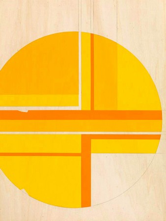 Jens Wolf, Pattern Boards 2003-2012 Galerie Hammelehle und Ahrens, Cologne 2012 October 26 – December 15, 2012 Text by Klaus Merkel iin the accompanying catalogue (date of issue: December 2012) For about ten years now, Jens Wolf decidedly executes his paintings as small-format, fully executed drafts, which he calls Pattern Boards. Their medium is always plywood in the format of 48 x 36 cm (36 x 48 cm), with their worked- on surfaces already showing all of the elements that are later transferred to larger sheets of plywood. The artist owns about 200 Pattern Boards, which are now presented for the first time—in a catalog and as an exhibition. They function as models for thought and/or action and as true role models for any further disposal. (1) The Pattern Board has the quality of a matrix-like beginning that already contains all meticulous details of the future large-scale paintings. (2) Different decisions maintain distance and support or enact the body of work in its reproducible and repetitive nature. Jens Wolf works on standard sheets of plywood, in which the painting surface is untreated. As industrially produced wood products with grain, the boards possess their own natural space of clear objecthood. A linear skeleton of stencil is first applied to the plywood boards. Then form and color, delicate areas, bridges and curves reminiscent of marquetry are docked onto it in an elaborate process of masking and cutting. In this way, the pictorial figure is clearly characterized and sharply separated from the surface. Each gestural painterly impulse is avoided. Wolf isolates his materials, builds up the image and assembles segments. The color palette is reduced. The paintings’ subject and medium are precisely coordinated and function as a sensitive pattern of figure and surface that optimally anchors the subject in space, whether to create a suggestion of emptiness or a kind of limbo. Virtually working in parallel, he adds to his abstract ciphers some quasi-realistic elements that complement his iconographic program: a broken line, a spot, a bulge, a blob, a false gloss, an irregularity or a slip. Any seemingly spontaneous randomness is a formal decision that within Jens Wolf’s system has to be repeatable or cloneable, whether it is ripped varnish, overpainted glue, gradient errors, compass circles, construction lines or sudden stops at the format’s border. They pull the paintings into the present. This working method prevents the painting’s simple geometric abstractions from snapping back into just another art history. Jens Wolf’s way of painting operates in a strongly subjective manner. He subjects his purely decorative forms, as well as his fragmented interventions, to a certain dissolving—a method that necessarily puts the question of beauty under stress. By the act of recycling forms as an appropriated element, he takes along every move into the blow-ups. (3) Dead Undead, Minimalism and After, and Ultramoderne were three group exhibitions in which Jens Wolf was involved. Their titles represent the climatic context of the mid-and late 2000s, with its search for a renewable taste from a mixture of neo-formalism and the revival of earlier models of abstraction. (4) For Jens Wolf, history is not completed—he presupposes the long chain of geometric abstraction as his aesthetic reference. He knows that he has to make use of his own aesthetic position—before he becomes a doppelganger. He also knows that these days subjective opinions are flexible and context-dependent and therefore subject to pretense and representations. Now for the first time, the Pattern Boards are on display in almost their entirety. According to their place in Jens Wolf’s work, they are particularly suitable for thesis elongation and/or refocusing—by putting the work’s conceptual components in the forefront and by emphasizing the general availability of his paintings in repetition and magnification. Unlike his usual previous exhibition practice of combining work groups with large-scale paintings, he now organizes his archives as an exhibition of lines, rows and clusters. As a successful self-commentary, he merges the work’s genesis as a texture with the full painterly range. The bare wood color additionally creates a continuous naturalistic level and pushes the sand-colored plywood boards with their porous top layer into a timeline—visualizing the construct and the course of the work as a strip that contain the drafts stored as pictograms, letters or drilling cores. Klaus Merkel (Translation: Sonja Engelhardt) (1) Accordingly Pattern Boards would be sample boards, on which art and craft coincide and thus trigger idea, draft and repeated feasibility, ergo, reproduction. (2) Each design can currently be applied to four sizes: 80 x 60 cm (60 x 80 cm), 115 x 85 cm (85 x 115 cm), 195 x 140 cm (140 x 195 cm), 235 x 170 (170 x 235 cm). (3) Low, Lower, Lowest Expectations are pop music quotes, live-playback performed by Angus Fairhurst—endlessly looped intros and lousy samples that put an abrupt end to the initial toe-tapping, because the music never really starts, but practically ends as a broken record. In his work, Fairhurst often talks about the fragile, melancholic status of the artist: samples as a keynote, mirroring, repetition, meandering in versions, reprocessing, arbitrariness of availability, cover versions, recycling and transference as artistic approaches, which at this point can be docked seamlessly to Jens Wolf’s model. (4) The exhibition Dead Undead, organized by Hans-Jürgen Hafner, was based on the observation that the exhibited works mostly function in terms of retro mechanisms—methods that partly reflect a formal aesthetic in the choice and treatment of materials or specific media or techniques and/or whose effects are visible on a thematic and contextual level. Dead Undead, Galerie Six Friedrich Lisa Ungar, Munich 2004, Minimalism and After III, DaimlerChrysler Contemporar