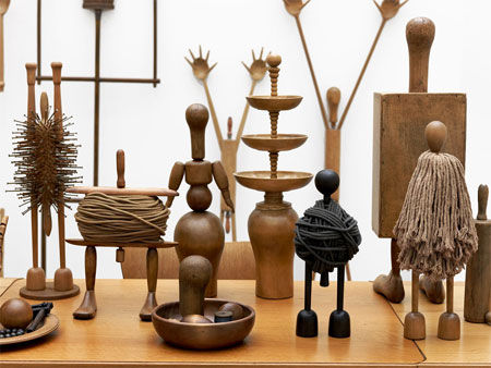 In both the Kammerspiel and the Conversation Pieces genres, stylistic unity was determined by emotion and atmosphere rather than by traditional narrative devices. Once assembled in an effective sequence, the resulting chemistry between plot and character drive the narrative. Chamber plays were initially defined by the spaces in which they took place�and hence its name�by a series of small domestic rooms. In Scene II, the kitchen/dining area sets the stage and serves as the initial bridge to Roman Ond�k and Wiebke Siem's work. In Ond�k's photo diptych His Affair with Time, the kitchen wall serves as a meter-stick for measuring a child's height. Even though the two photographs seem identical, they were taken minutes apart, serving as a documentation of the process and passing of time. In Wiebke Siem's sculptural installation Die F�lscherin, figures that mimic traditional African forms made from household objects overflow a prewar modern dining-room. While rendering the room unusable, the figures seem to represent or replace the family, and the housewife, the artist. In this conflation of motifs, Siem skewers the way in which Modernist artists portrayed African motifs as �other,� �primitive,� �uncontrollable,� �sexual,� and often female. Although in the domestic spaces in Ond�k and Siem's work time is at a standstill, we have the ability to enter these spaces, while acknowledging our simultaneous distance to them.