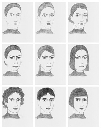 Sophie Aschauer, Infinite Variety (1 Imaginary Self-portrait and 8 Overpaintings), 2008 9 photocopies of pencil on paper Unlimited Edition, Each 8 � x 11 inches