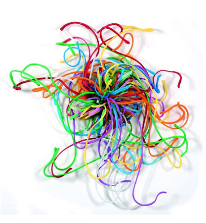 Alex Angi Solo Show at the Paris gallery 9 Jan - 6 Feb 2010 The colored dynamism in Alex Angi's work seems close to that of Pop-art. He uses recycled materials that he transforms into surprising art objects. In this way, he has become a �golddigger.� From public trash, Angi recovers plastic and industrial materials to create his art, with the help of a custom-built technique. The recycling and accumulation of materials offers a new artistic expression and confirms Alex Angi�s commitment to nature. He is determined to defend the planet, not only by the language but also with his art. Alex Angi's works act on behalf of the planet. The exuberance of Alex Angi's works is plastic. It is an itch of accumulated forms producing a new aesthetic language. His works are multi-colored, abstract, three-dimensional installations. Some rise vertically, like totem poles, while others recreate an uncertain nature of plasticized flowers. Certain people speak about a "plastic jungle," yet others see the absurd outfit of industry. One thing is sure; Alex Angi succeeds in transforming raw materials into objects full of liveliness and powerful works of art. La galerie Magda Danysz pr�sente pour la premi�re fois le travail d�Alex Angi. Artiste d�j� r�put� pour de nombreuses expositions en Angleterre, en Allemagne, en Chine ou encore en Cor�e. Quand nombre de gens r�fl�chissent � la nature de l�art ou � sa mort prochaine, Alex Angi r�fl�chit quant � lui � la mort probable de la nature. Ses oeuvres traitent de notre soci�t�, des probl�mes actuels de notre plan�te ou encore de la r�volution g�n�tique. Selon lui le monde est en danger mais l�art peut avoir un impact sur cette �volution. L�exub�rance des oeuvres d�Alex Angi est plastique. C�est un fourmillement de formes accumul�es formant un langage esth�tique nouveau. Ses oeuvres sont des installations tridimensionnelles multicolores et abstraites qui s��l�vent verticalement telles des totems ou recr�ent une nature incertaine de fleurs plastifi�es. Certains parlent de � jungle plastique �, d�autre y voit la panoplie absurde de l�industrie. Une chose est s�re, Alex Angi r�ussit � transformer la mati�re brute en une oeuvre puissante, des objets pleins de vivacit�. |