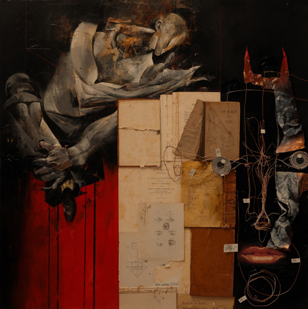 Merry Karnowsky Gallery is proud to present a solo exhibition by renowned British artist, photographer, filmmaker and writer Dave McKean. PERSISTENCE OF VISION is a glimpse inside McKean�s mind. His paintings and drawings capture the mystery of silent film and serve as postcards from his travels around the world. In a series of skeleton drawings, a man becomes pathologically aware of his own skeleton and the feeling of his bones grinding and sliding against each other inside his skin. McKean�s striking photographs depict an ironic, sub-atomic tarot deck for an unseen world, combining traditional tarot iconography with tables of quarks and fermions of particle physics.