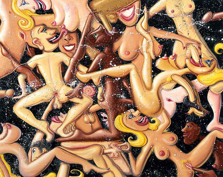oil and glitter on linen, 48 x 60 inches / 121.9 x 152.4 cm signed Kenny Scharf '09 on back |