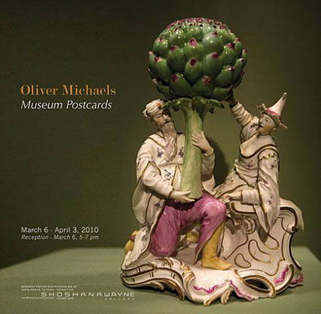 Shoshana Wayne Gallery is pleased present its second solo exhibition of new work by Oliver Michaels. This new show takes the form of an installation of seven new sculptures, each structure acting as a stage for the projected videos. These videos animate images of sculptures taken from museum postcards so it appears the figures are talking. An act that simultaneously reveres, abstracts and defaces the chosen works, he hijacks the objects' forms to create his own theatrical appropriations.